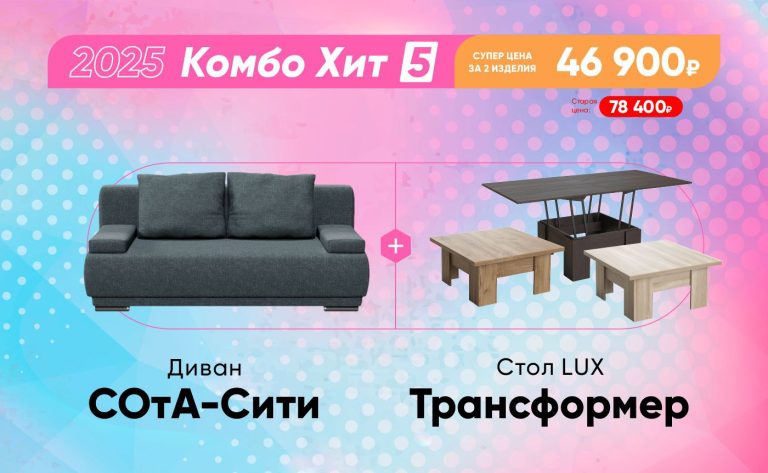 Вся мебель «СОтА» уже в наличии и готова к отправке. Вам не придётся ждать изготовления — достаточно выбрать подходящий вариант, и мы быстро организуем доставку.