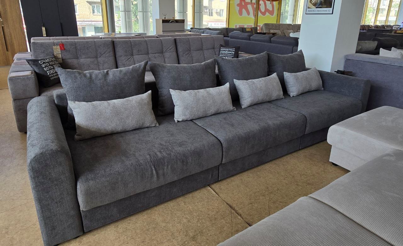 Диван СОтА-33 современный, комфортабельный лаунж диван с оригинальным дизайном. Его плавные формы, комфортная посадка, большое количество декоративных подушек и мягкая ткань добавляют в интерьер уюта. Каждое посадочное место выдвигается вперед и получается универсальный Угловой диван. Благодаря механизму еврокнижка диван с легкостью превращается в полноценное спальное место.