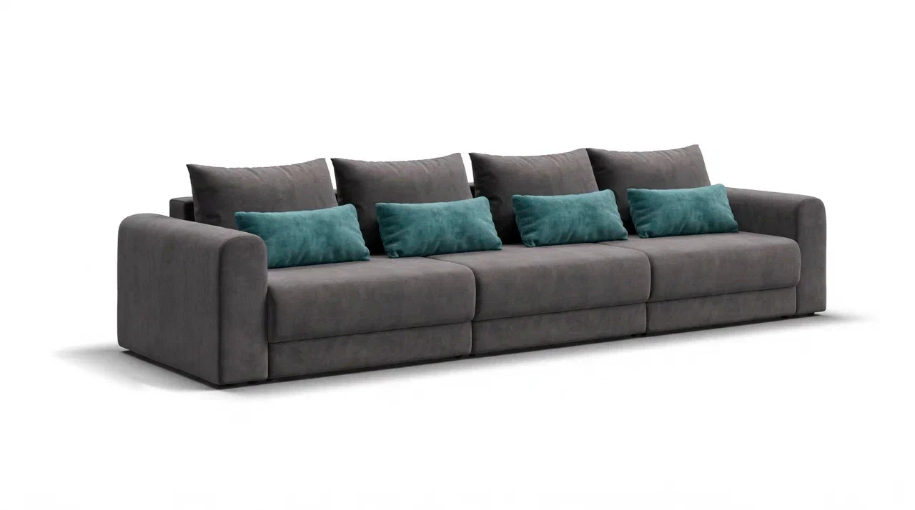 Диван СОтА-33 современный, комфортабельный лаунж диван с оригинальным дизайном. Его плавные формы, комфортная посадка, большое количество декоративных подушек и мягкая ткань добавляют в интерьер уюта. Каждое посадочное место выдвигается вперед и получается универсальный Угловой диван. Благодаря механизму еврокнижка диван с легкостью превращается в полноценное спальное место.