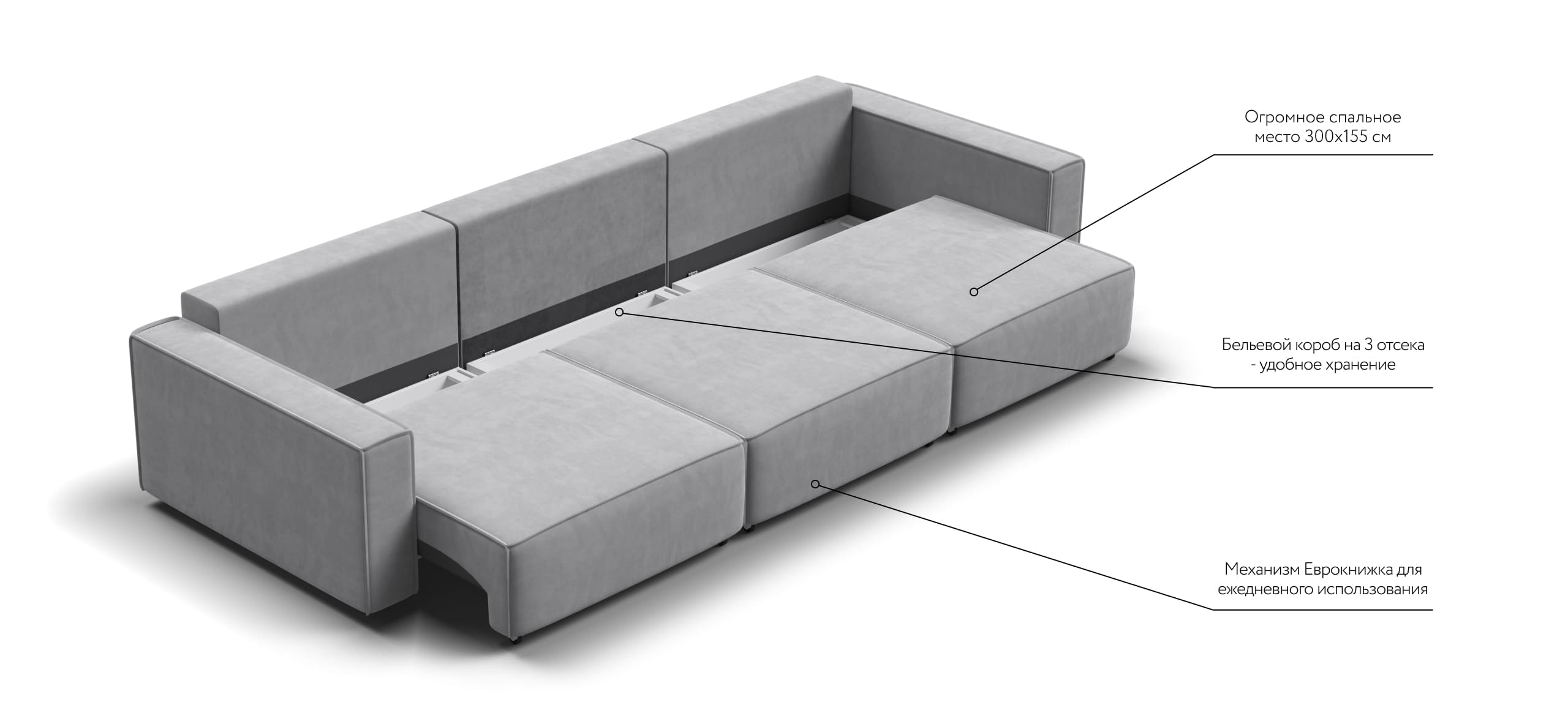 Простой и надежный механизм еврокнижка с легкостью превратит модульную систему в комфортное спальное место.