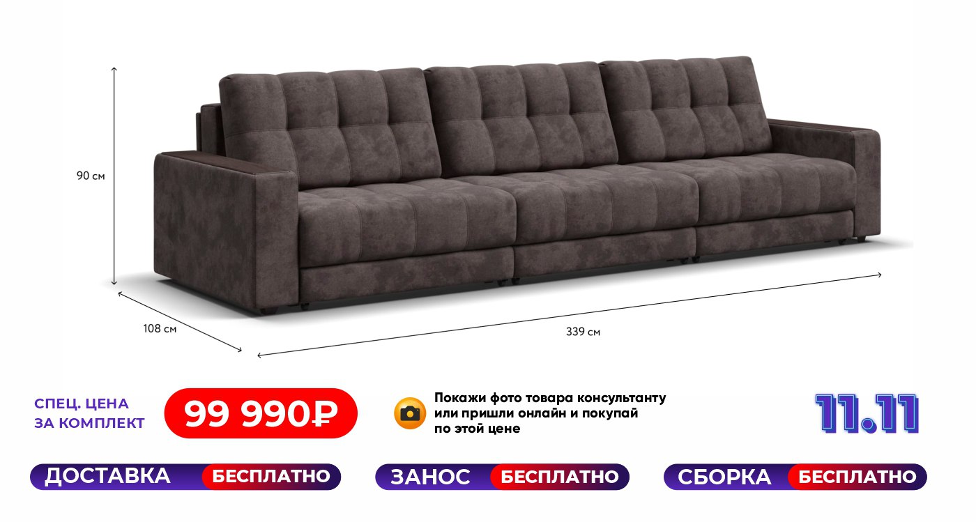 Диван СОтА-75 Гранд – большой, стильный и комфортный диван, предназначенный для просторной комнаты. Продуманный до мелочей диван СОтА-75 Гранд сочетает в себе надежный каркас, мягкие ткани, многофункциональность и быструю сборку за 1 минуту без инструментов – ощутите комфорт у себя дома!