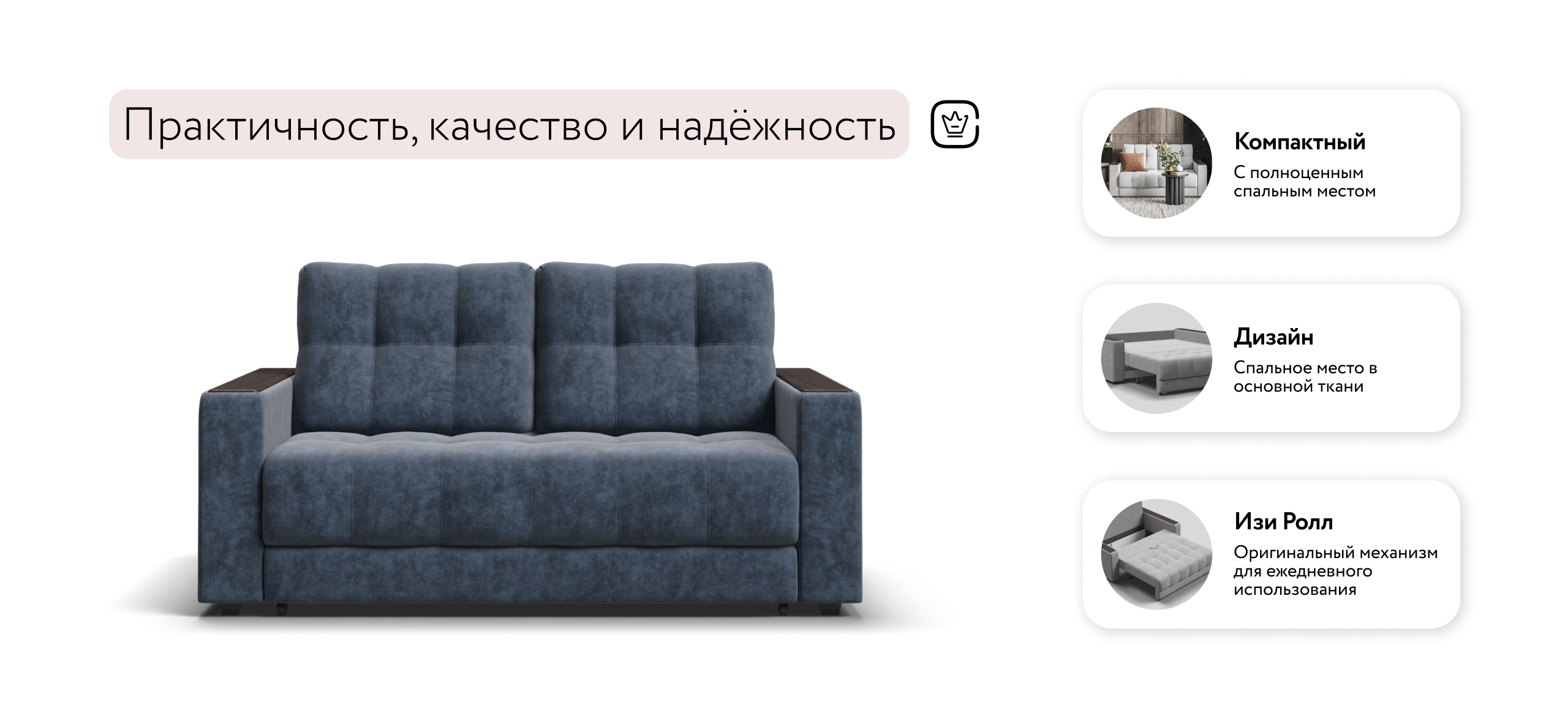 СОтА-75 малютка — диван с механизмом «EASY ROLL», который подойдет для любой современной квартиры. Компактный размер дивана сочетается с оптимальным спальным местом, на котором могут с комфортом разместиться 2 человека. Большой выбор популярных цветов позволит подобрать диван в любой интерьер.