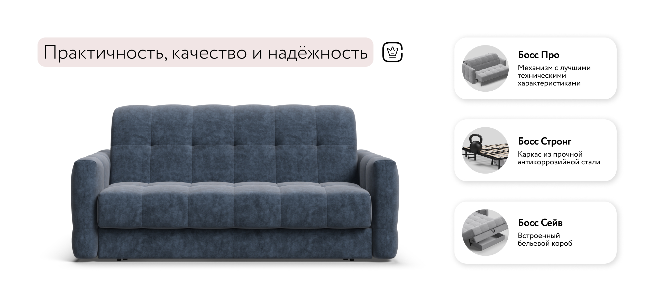 В комплекте с диваном идет бельевой короб на 68 л и не нужно за него доплачивать!