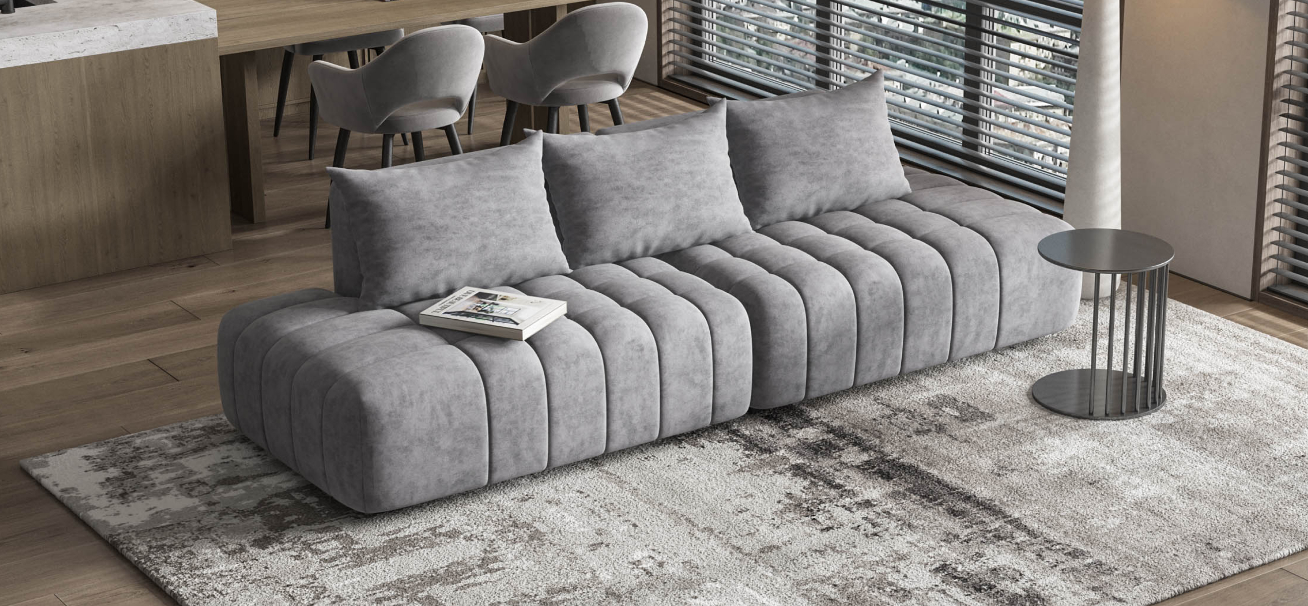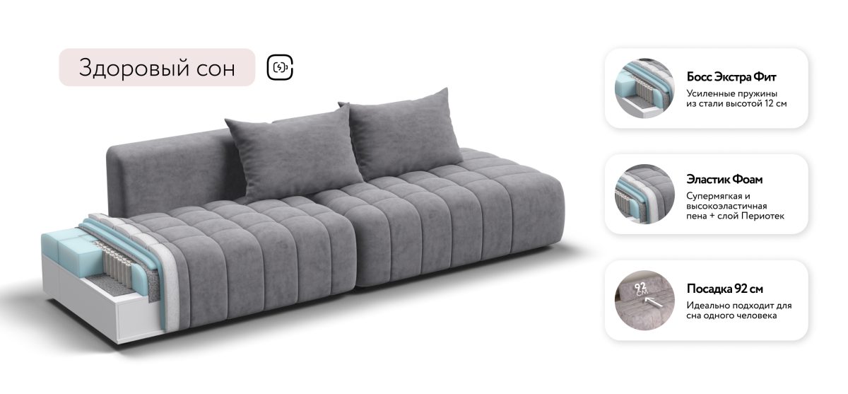 Благодаря инновационной системе креплений и быстросъёмным элементам Вы с лёгкостью можете поменять конфигурацию и адаптировать диван под новое пространство.