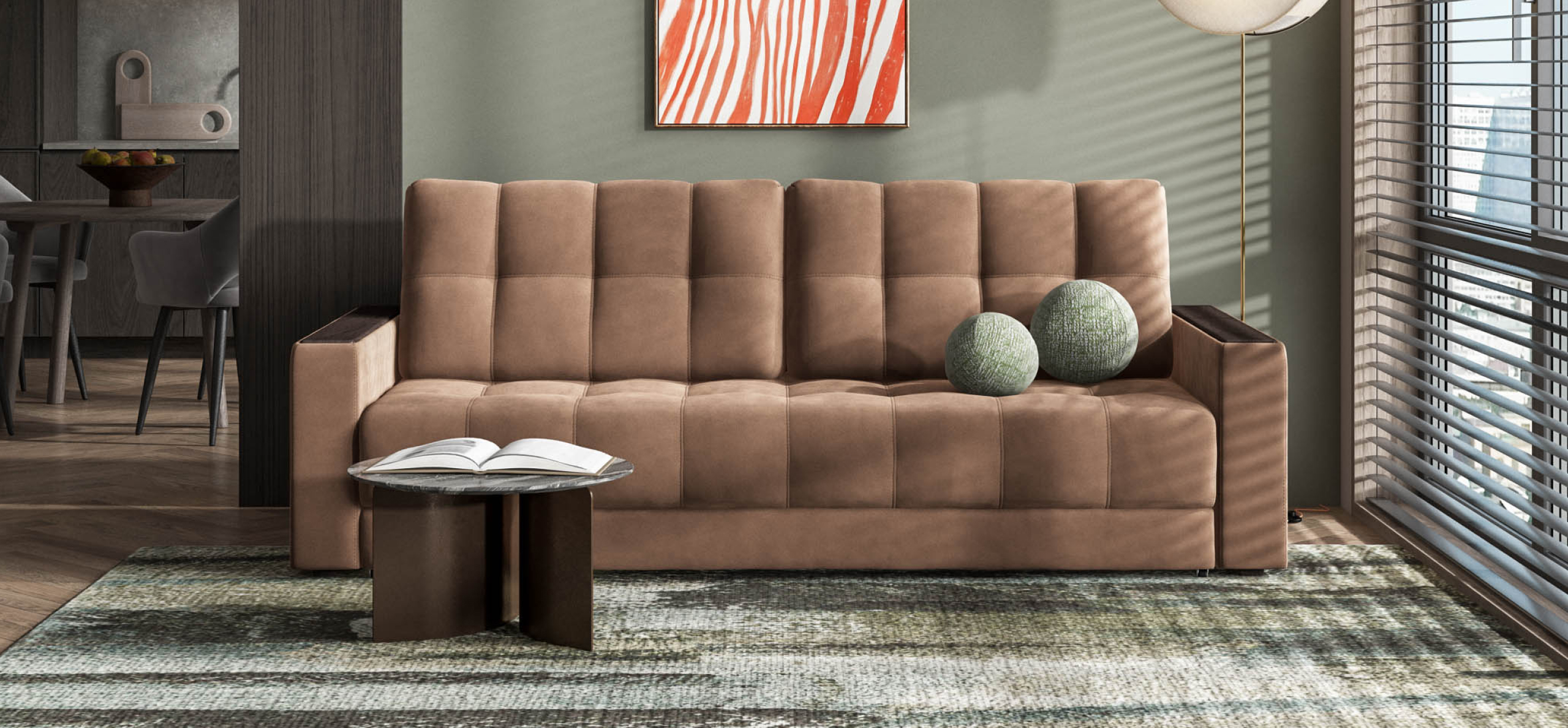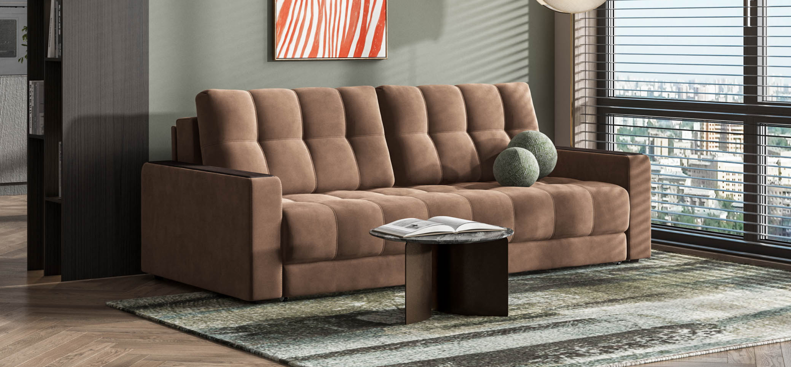 Стильный диван для тех, кто ищет максимальный комфорт. Продуманный до мелочей диван СОтА-75 сочетает в себе надежный каркас, мягкие ткани, многофункциональность и быструю сборку за 1 минуту без инструментов — ощутите комфорт у себя дома!