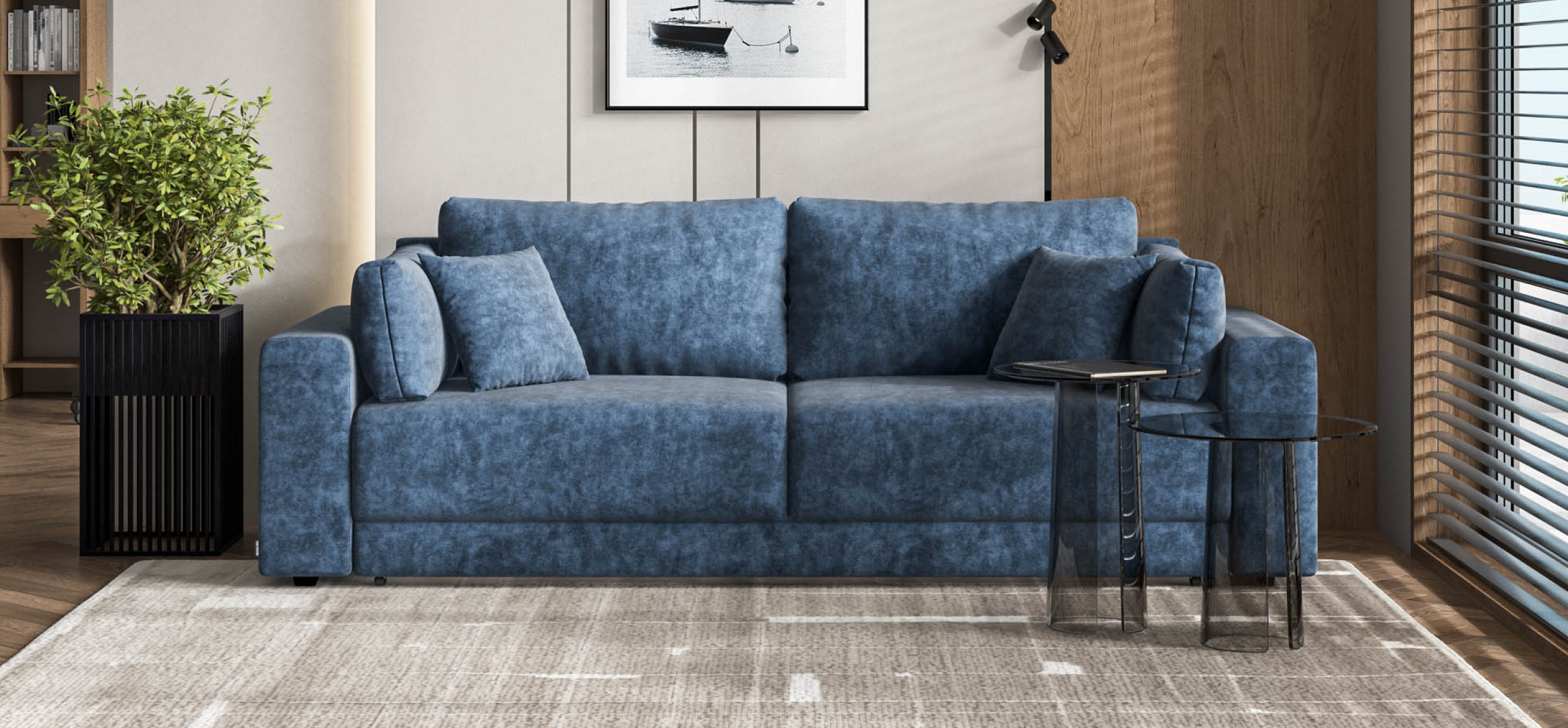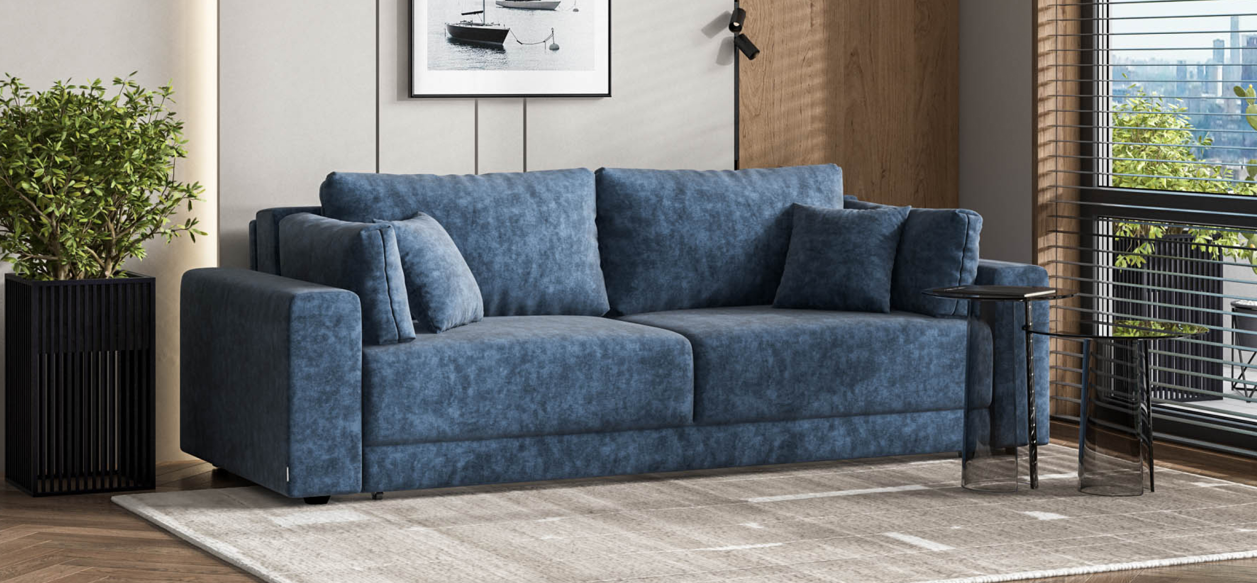 Оснащённый независимым пружинным блоком и высокоэластичной пеной Эластик Фоам с дополнительным слоем периотека, диван гарантирует анатомическую поддержку и комфортный сон. Простой и надёжный механизм трансформации «еврокнижка» позволяет легко преобразовать диван в просторное спальное место.