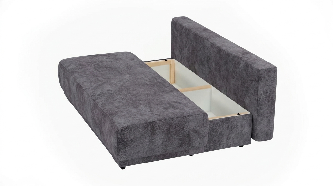 Наполнение — качественный безопасный пенополиуретан повышенной плотности и буковые латы. Для сна, в вашем распоряжении полноценная комфортная кровать, которая предоставит два спальныxместа, путем раскладывания с помощью механизма «Еврокнижка». Диван оборудован вместительным бельевым коробом.