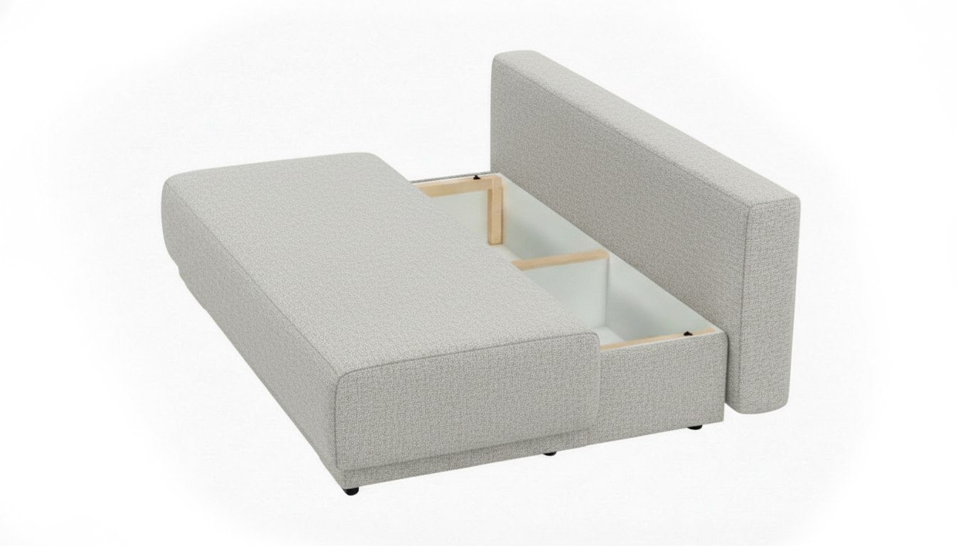 Наполнение — качественный безопасный пенополиуретан повышенной плотности и буковые латы. Для сна, в вашем распоряжении полноценная комфортная кровать, которая предоставит два спальныxместа, путем раскладывания с помощью механизма «Еврокнижка». Диван оборудован вместительным бельевым коробом.