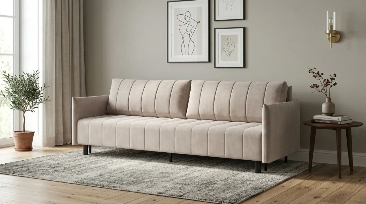 Диван СОтА Сканди — идеальный баланс стиля, комфорта и функциональности для современного интерьера. Модель оснащена надёжным механизмом трансформации еврокнижка, который за пару движений превращает диван в полноценное спальное место. Высокие ножки из высокопрочной стали обеспечивают надежный каркас и под диван свободно заезжает робот-пылесос. СОтА Сканди — ваш умный выбор для современных квартир, студий и уютных гостиных.