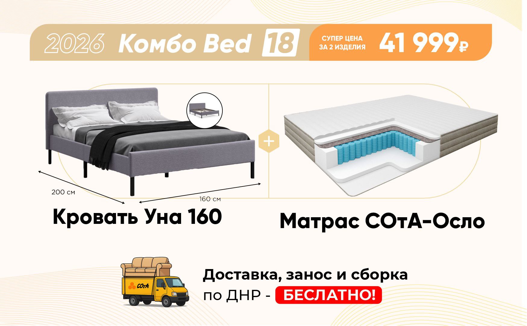СОтА-Осло — это комфорт и поддержка. Независимые пружины дарят упругость, термовойлок — надежность. Средняя жесткость, высота 21 см, выдерживает до 160 кг. Чехол из трикотажа, возможна скрутка. Доступен в скрученном виде.