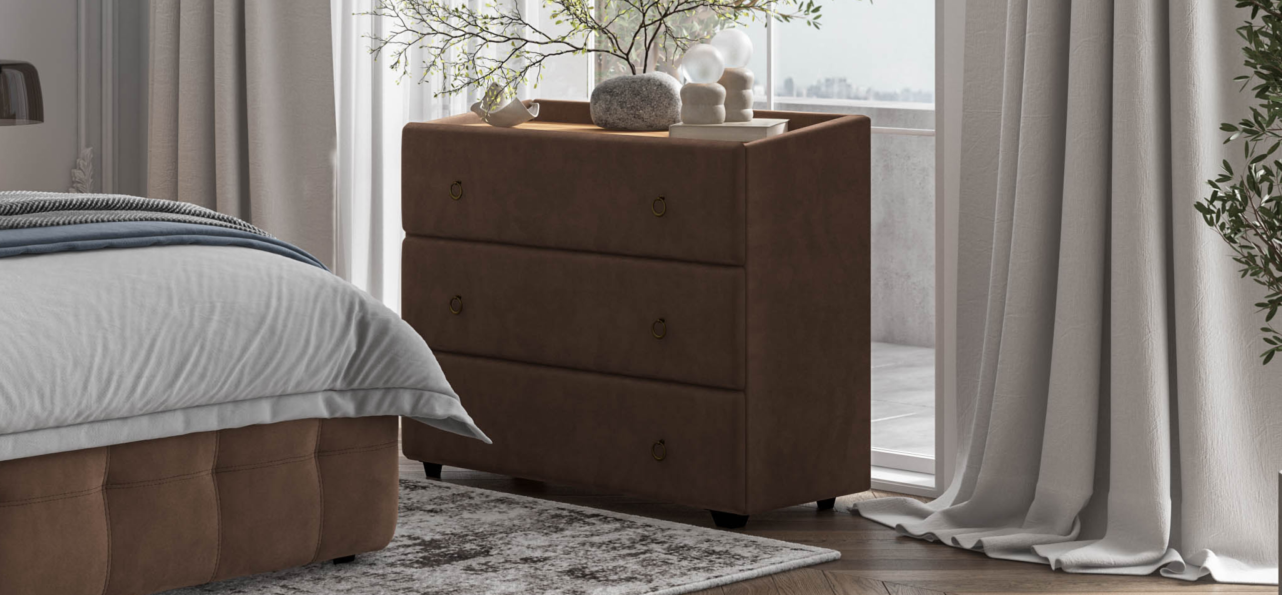 Комод Босс Классик разработан специально для вашего максимального комфорта. Три вместительных ящика из качественных материалов с усиленными направляющими скрытого монтажа для хранения вещей. Продуманный дизайн комода с высоким бортиком защитит ваши ценные вещи от падения, а дизайнерская ручка подчеркнет изысканный вкус владельца. Новые цвета ЛДСП в теплом и холодном оттенке подобраны специально под наши ткани.