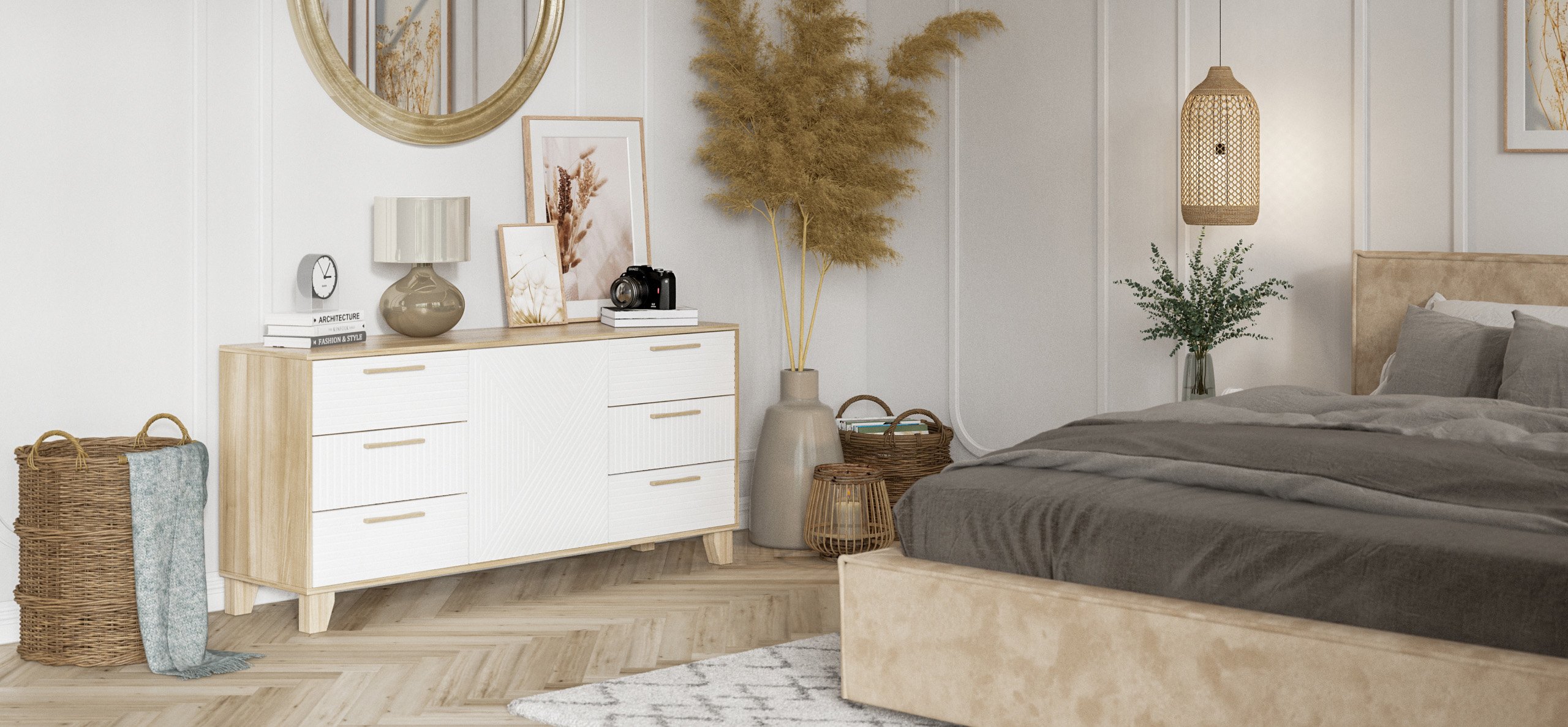 Комод OLAF 150 – это сочетание стиля и умного дизайна. В ней нет места лишним открытым секциям или неудобным размерам полок. А сдержанный контурный рисунок легко вписать в любой интерьер. Дизайн комода гармонично сочетается со стилем минимализм, а также скандинавским и классическим.