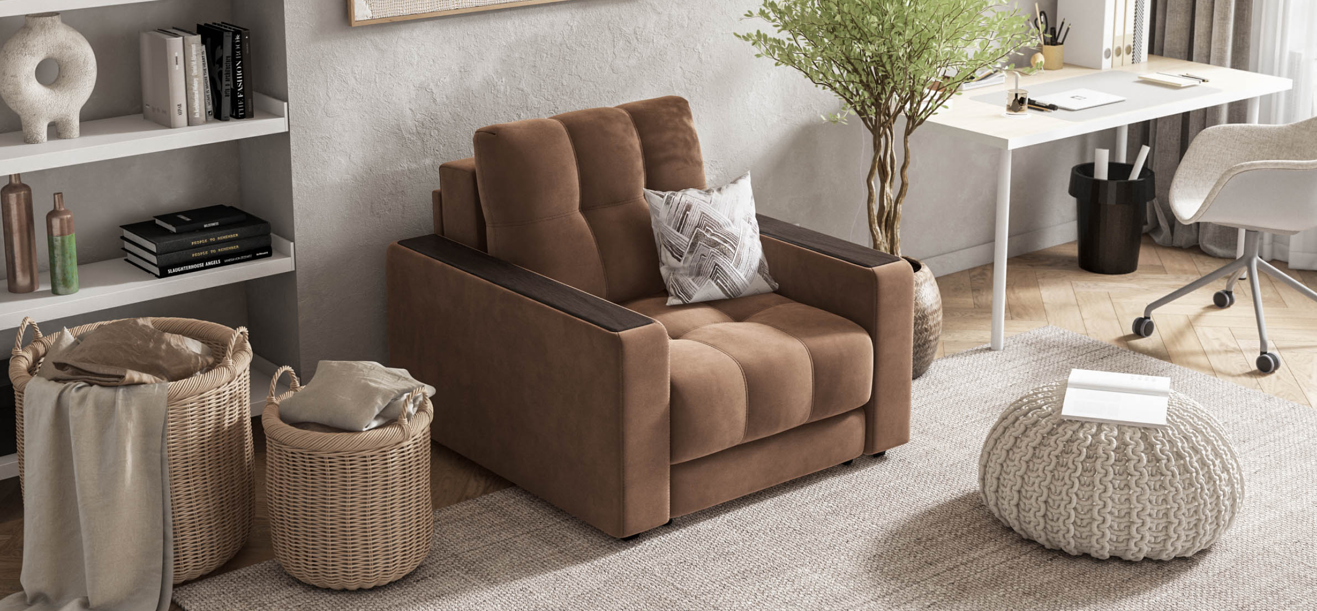 Кресло-кровать СОтА-75 велюр Монолит мокко