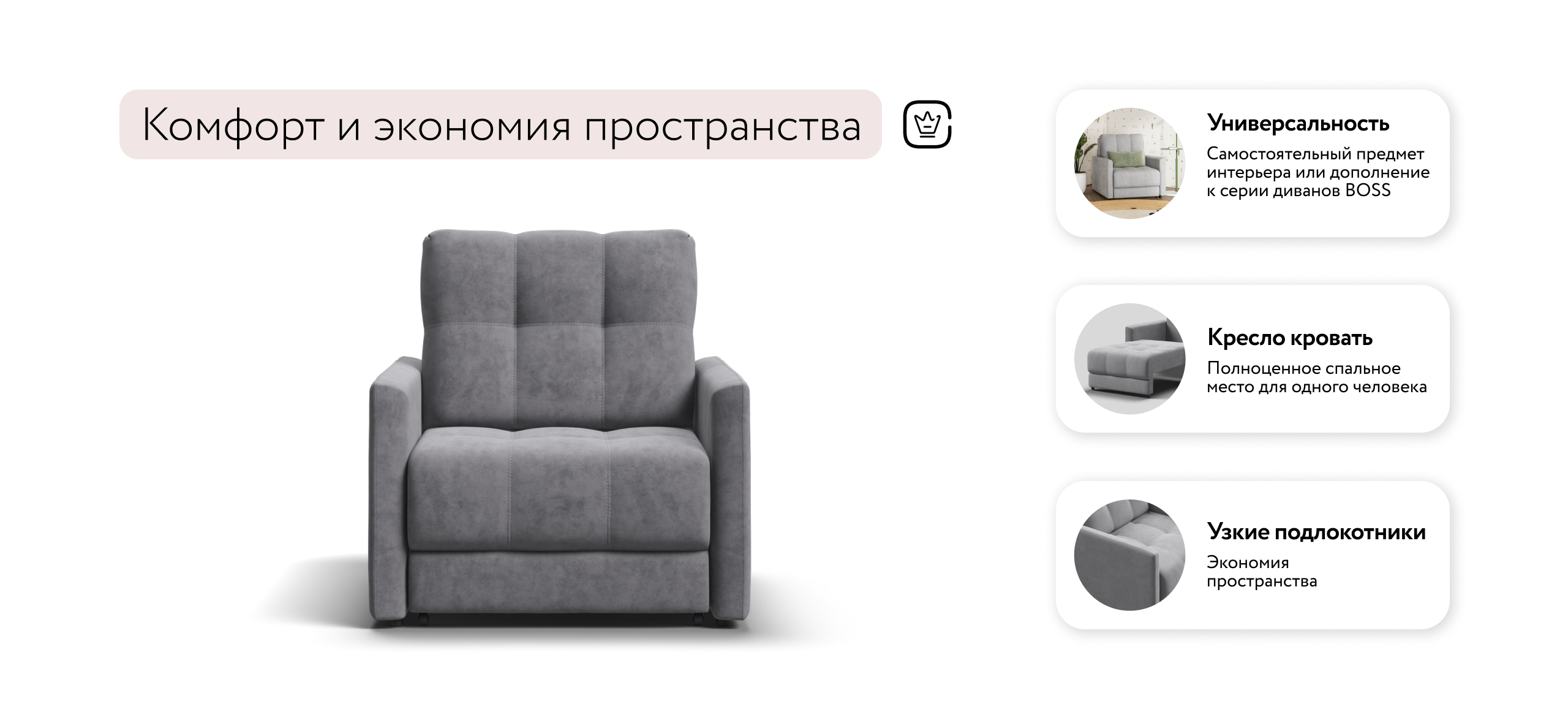 СОтА-87 кресло-кровать — идеальное дополнение к дивану СОтА-87, отлично сочетает в себе две функции: подарит комфортный отдых днем и даст полноценное спальное место для гостя, который решил остаться у вас на ночь. Тонкие подлокотники идеальны для тех, кто ищет не классическое решение для своего интерьера.