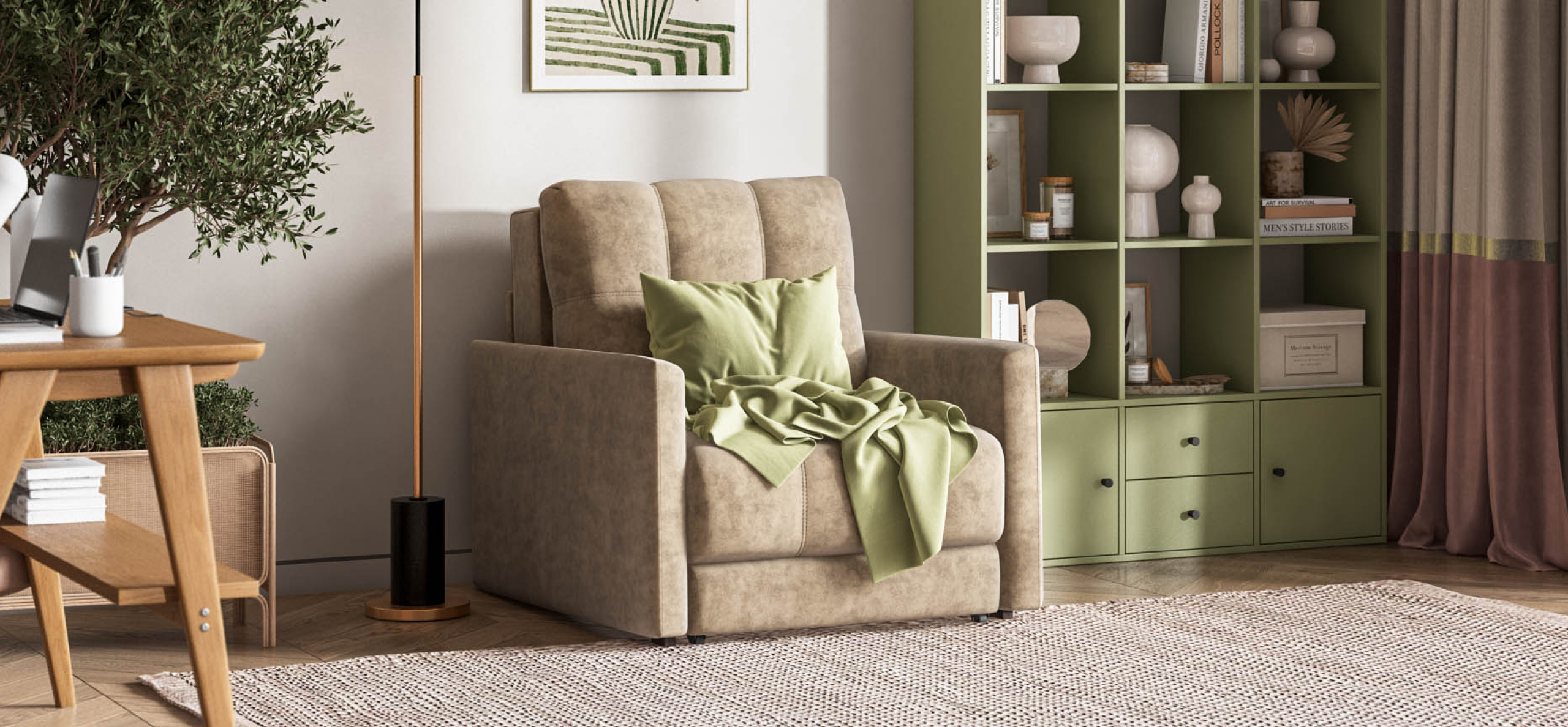СОтА-87 кресло-кровать – идеальное дополнение к дивану СОтА-87, отлично сочетает в себе две функции: подарит комфортный отдых днем и даст полноценное спальное место для гостя, который решил остаться у вас на ночь. Тонкие подлокотники идеальны для тех, кто ищет не классическое решение для своего интерьера.