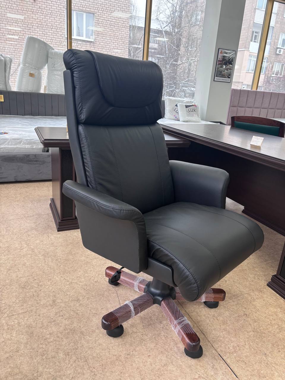 Классический силуэт кресла подчеркивает статус и вкус владельца, а качественные материалы, такие как натуральная кожа и деревянные подлокотники с кожаными накладками, добавляют изделию солидности и долговечности.