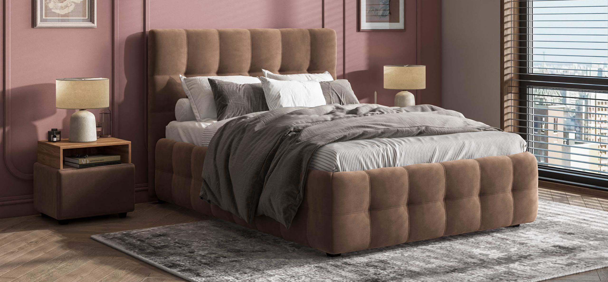 Босс кровать — элегантная кровать сдержанного минималистичного дизайна. Благодаря мягкому изголовью с геометричным узором, кровать становится центром любой спальни. Комфортные обивки придают ощущение неповторимого уюта.