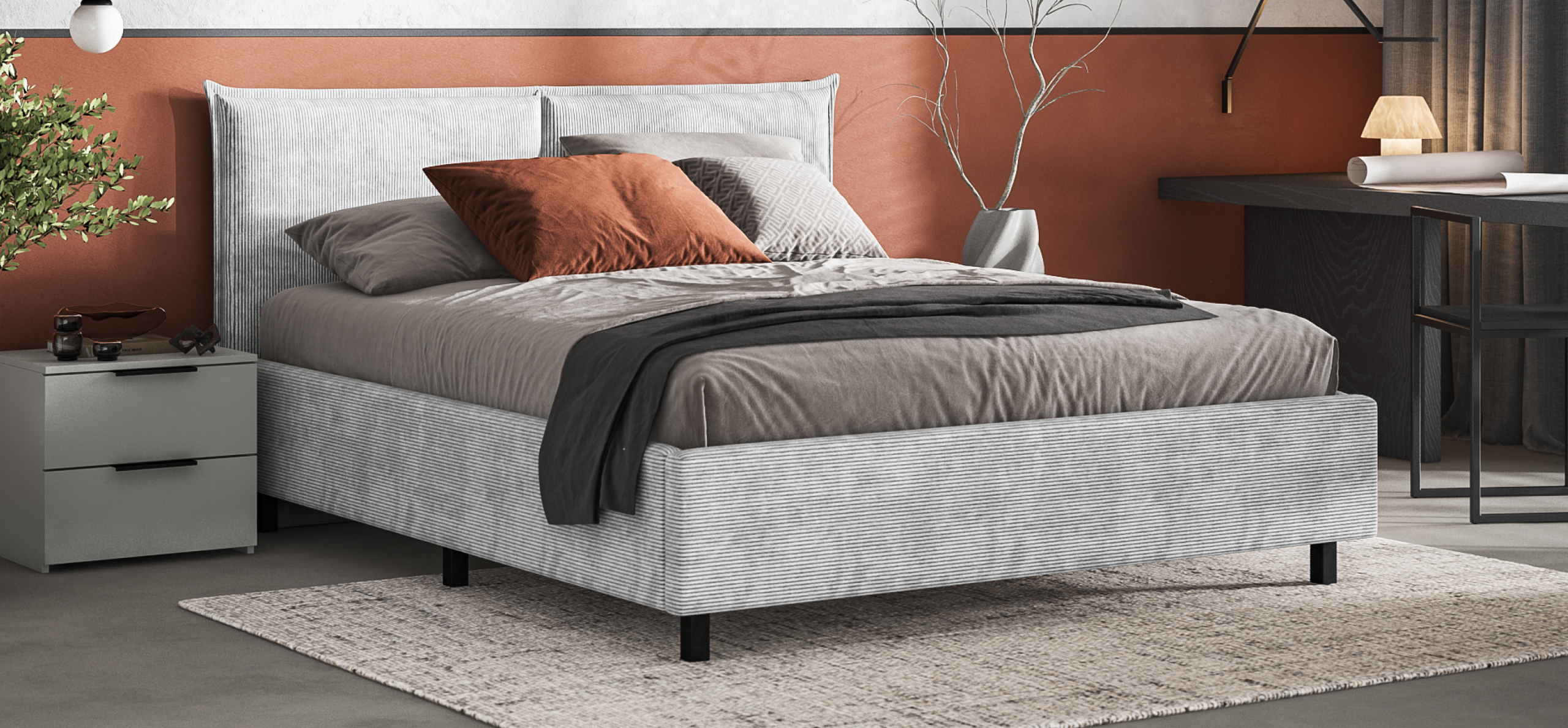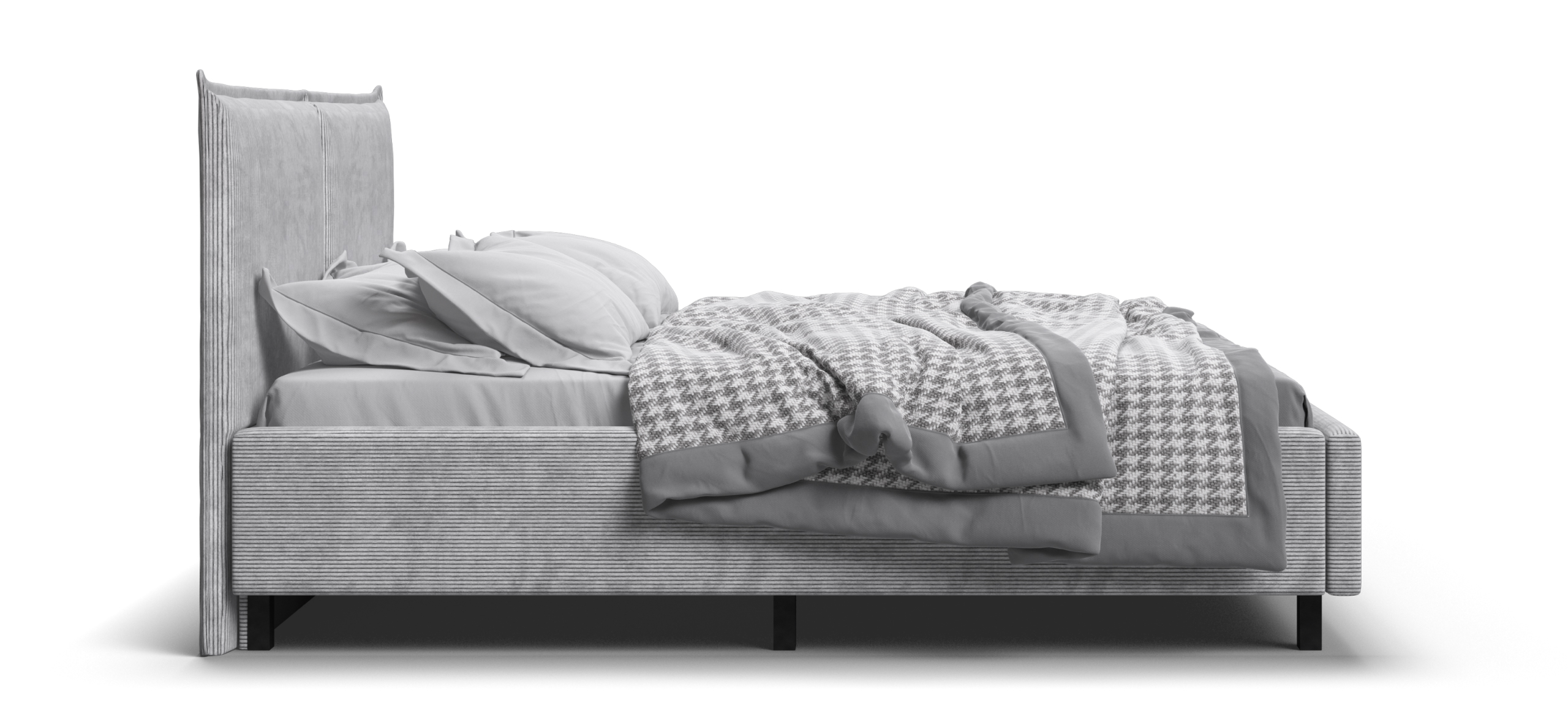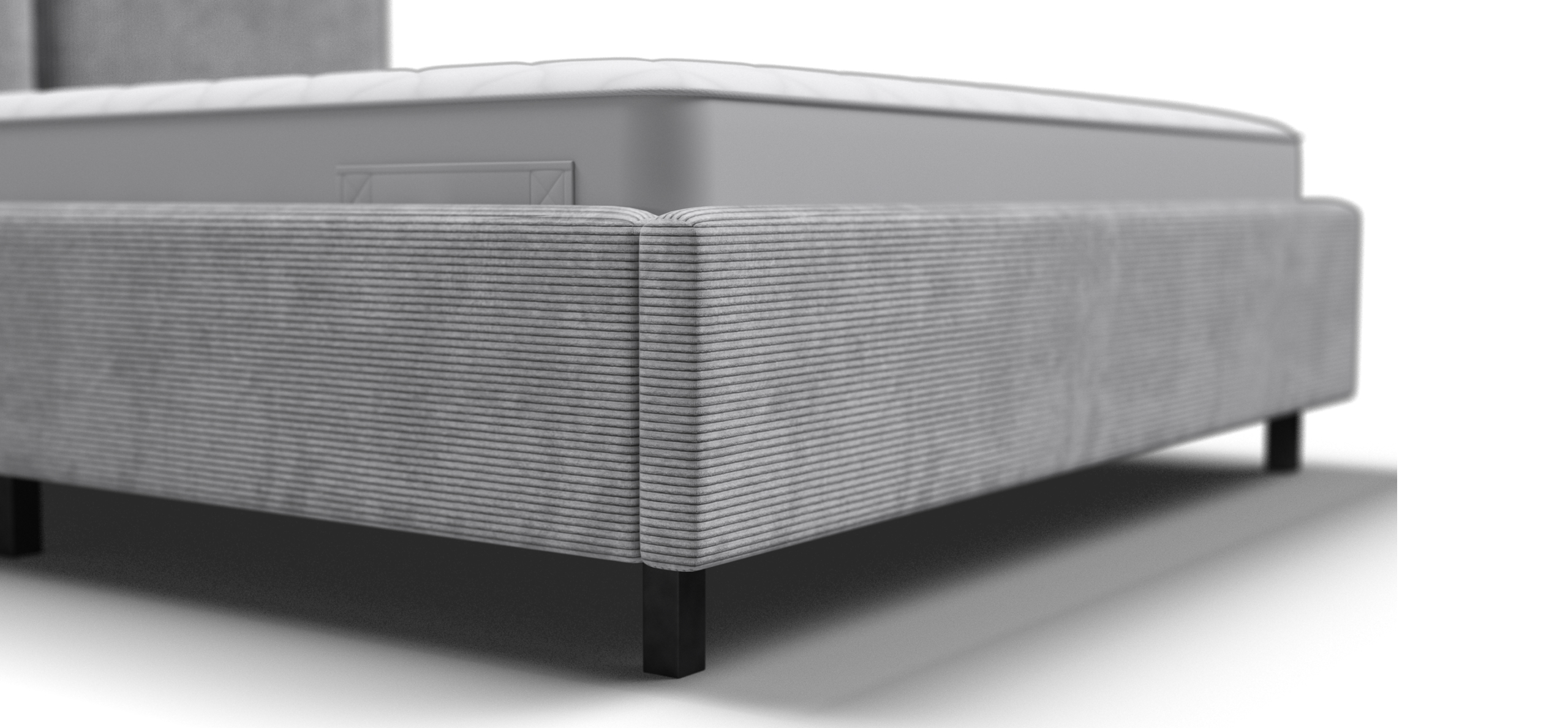 В кровати используются газлифты из авиационного алюминия SpaceLift, что обеспечивает легкость и надежность подъема. Скрытое отделение для хранения белья объемом 450 литров, HideBox, добавляет практичности и помогает поддерживать порядок в спальне.