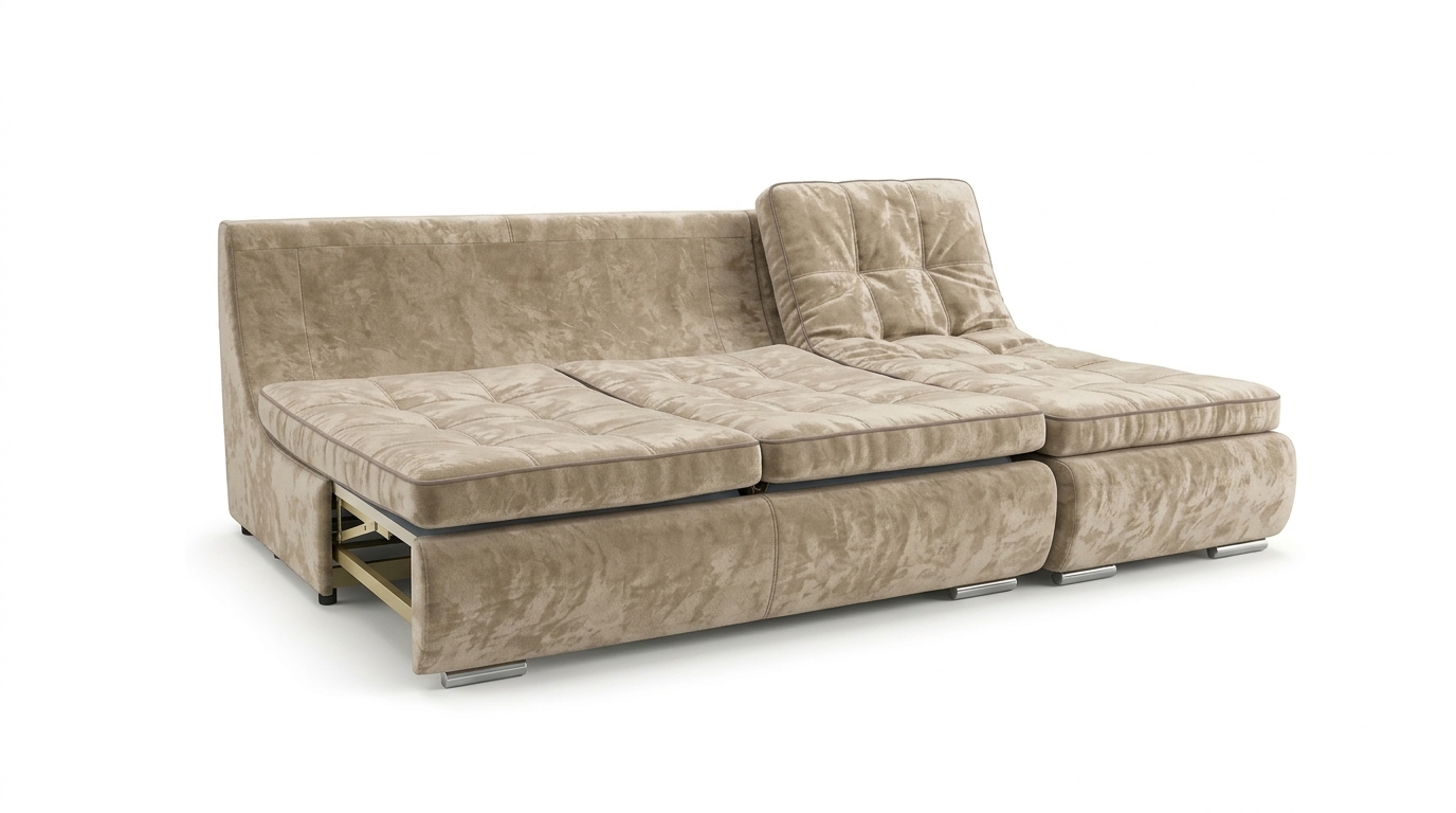 Модульный диван «СОтА-Bellucci» имеет сложный каркас, состоящий из многослойного древесного материала, отличающегося повышенной прочностью и износостойкостью, который гармонично сочетается с наполнителем из : ППУ повышенной плотности, буковыxлат, синтепона, и силиконизированного холлофайбера. Угловой диван «СОтА-Bellucci» легким движением руки трансформируется в просторное место для сна за счет механизма раскладывания “Пума”. Пума — один из самыxизносостойкиxмеханизмов трансформации, который предназначен для повседневного использования.