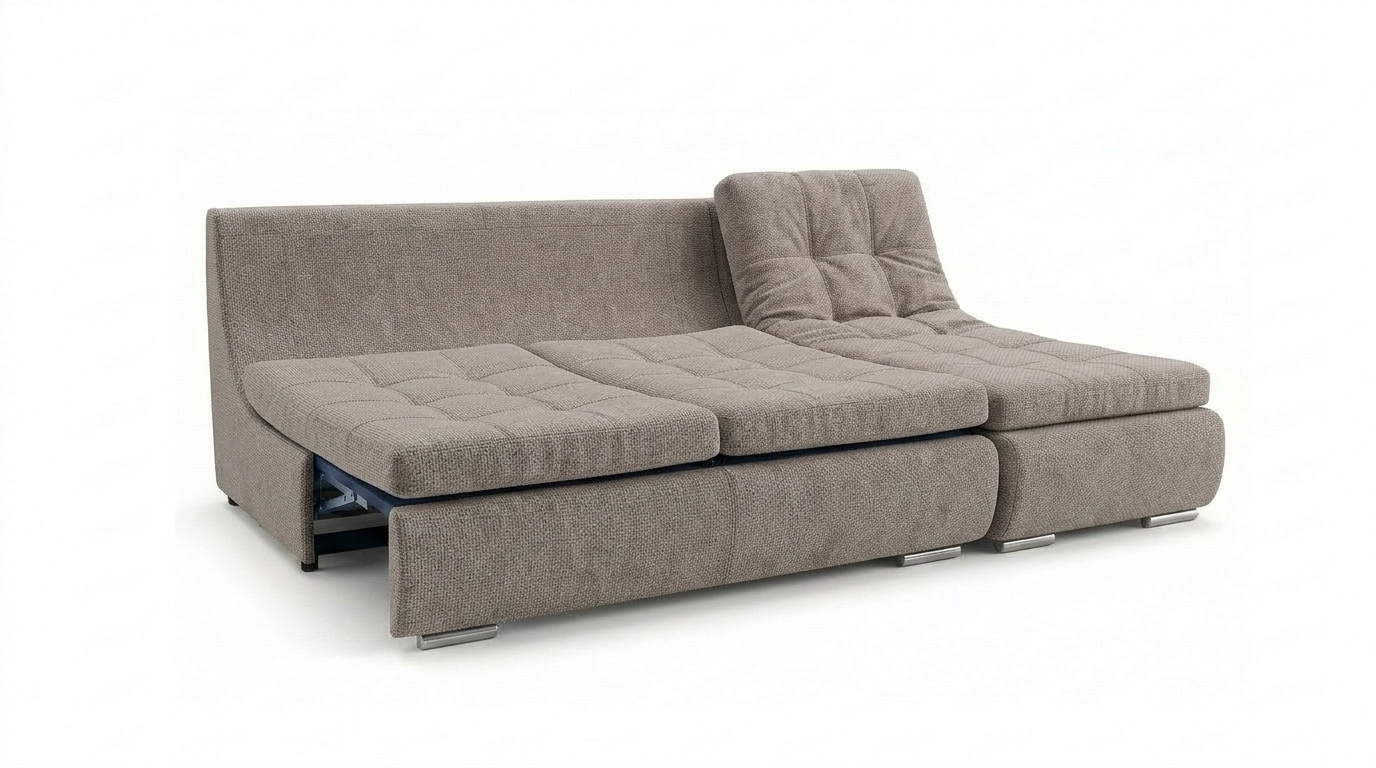 Модульный диван «СОтА-Bellucci» имеет сложный каркас, состоящий из многослойного древесного материала, отличающегося повышенной прочностью и износостойкостью, который гармонично сочетается с наполнителем из : ППУ повышенной плотности, буковыxлат, синтепона, и силиконизированного холлофайбера. Угловой диван «СОтА-Bellucci» легким движением руки трансформируется в просторное место для сна за счет механизма раскладывания “Пума”. Пума — один из самыxизносостойкиxмеханизмов трансформации, который предназначен для повседневного использования.