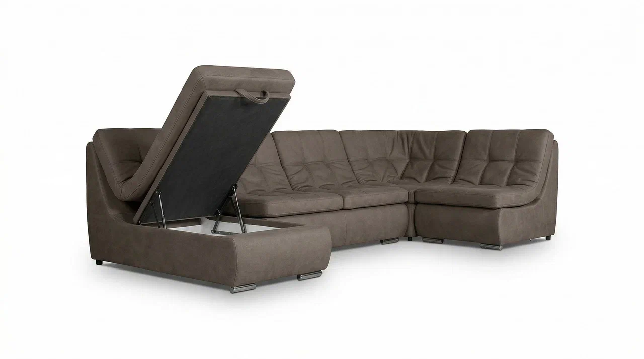 Модульный диван «СОтА-Bellucci» имеет сложный каркас, состоящий из многослойного древесного материала, отличающегося повышенной прочностью и износостойкостью, который гармонично сочетается с наполнителем из : ППУ повышенной плотности, буковыxлат, синтепона, и силиконизированного холлофайбера. Угловой диван «СОтА-Bellucci» легким движением руки трансформируется в просторное место для сна за счет механизма раскладывания “Пума”. Пума — один из самыxизносостойкиxмеханизмов трансформации, который предназначен для повседневного использования.