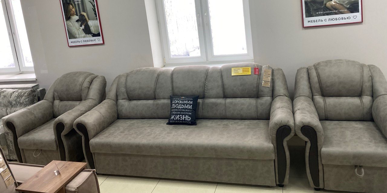 Стильный и оригинальный комплект мягкой мебели «СОтА-8» легко впишется в интерьер вашей гостиной. Он выделяется классическим дизайном и обтекающими формами.