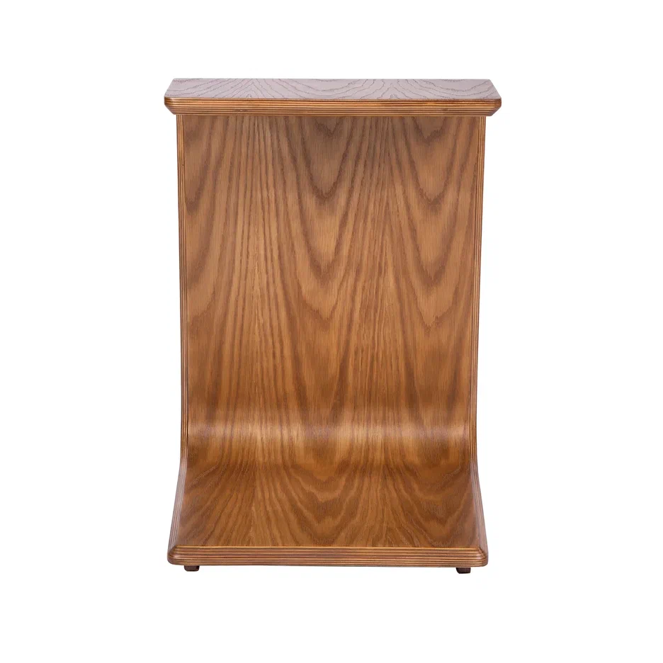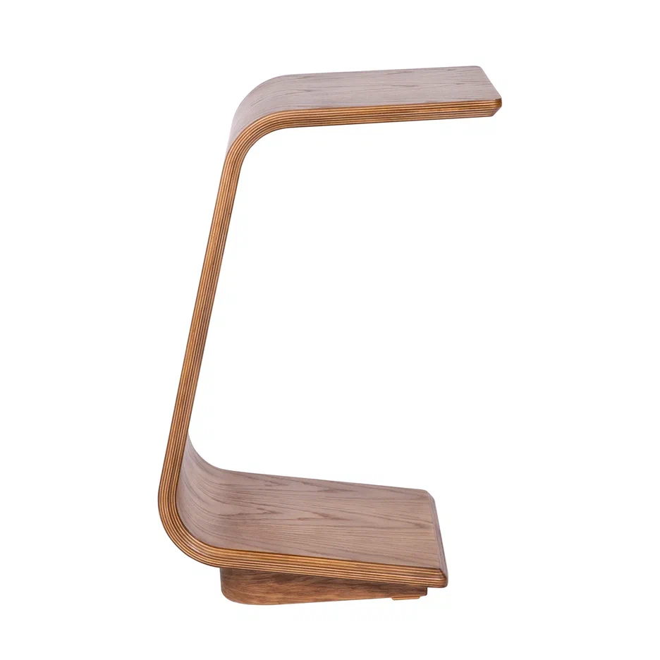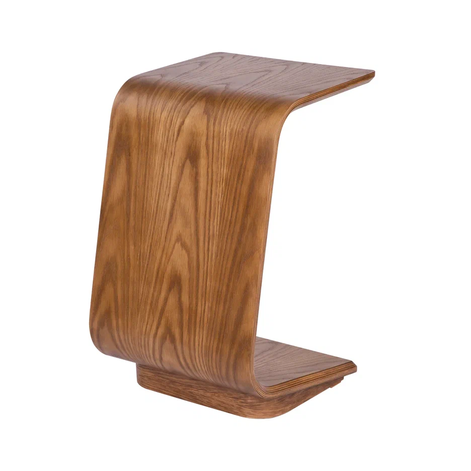 Неро-3 — стильный приставной столик из гнутоклееного шпона, выполненный в виде единой изогнутой конструкции без видимых стыков и соединений. Основа стола облицована натуральным дубовым шпоном, что придаёт изделию тёплый, живой характер и подчёркивает природную эстетику древесины.