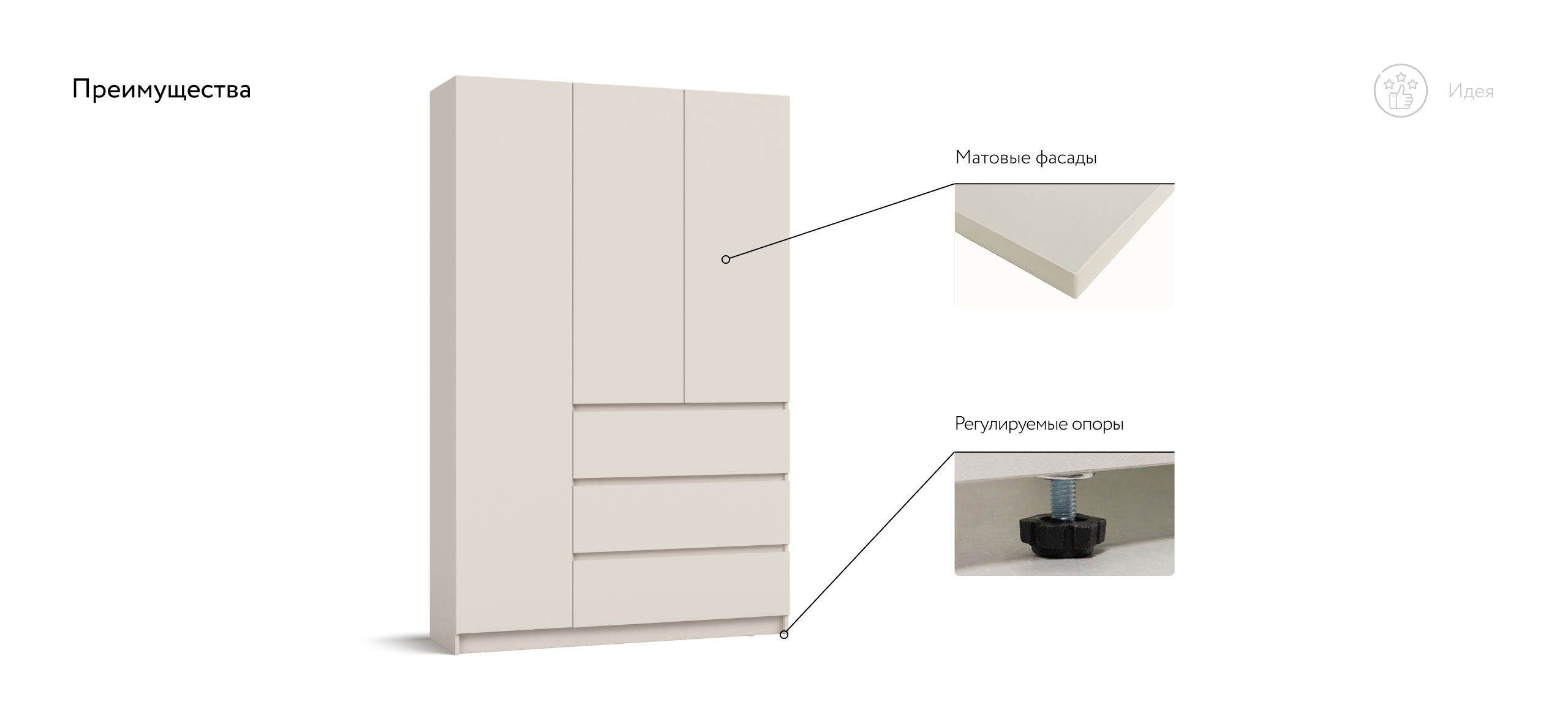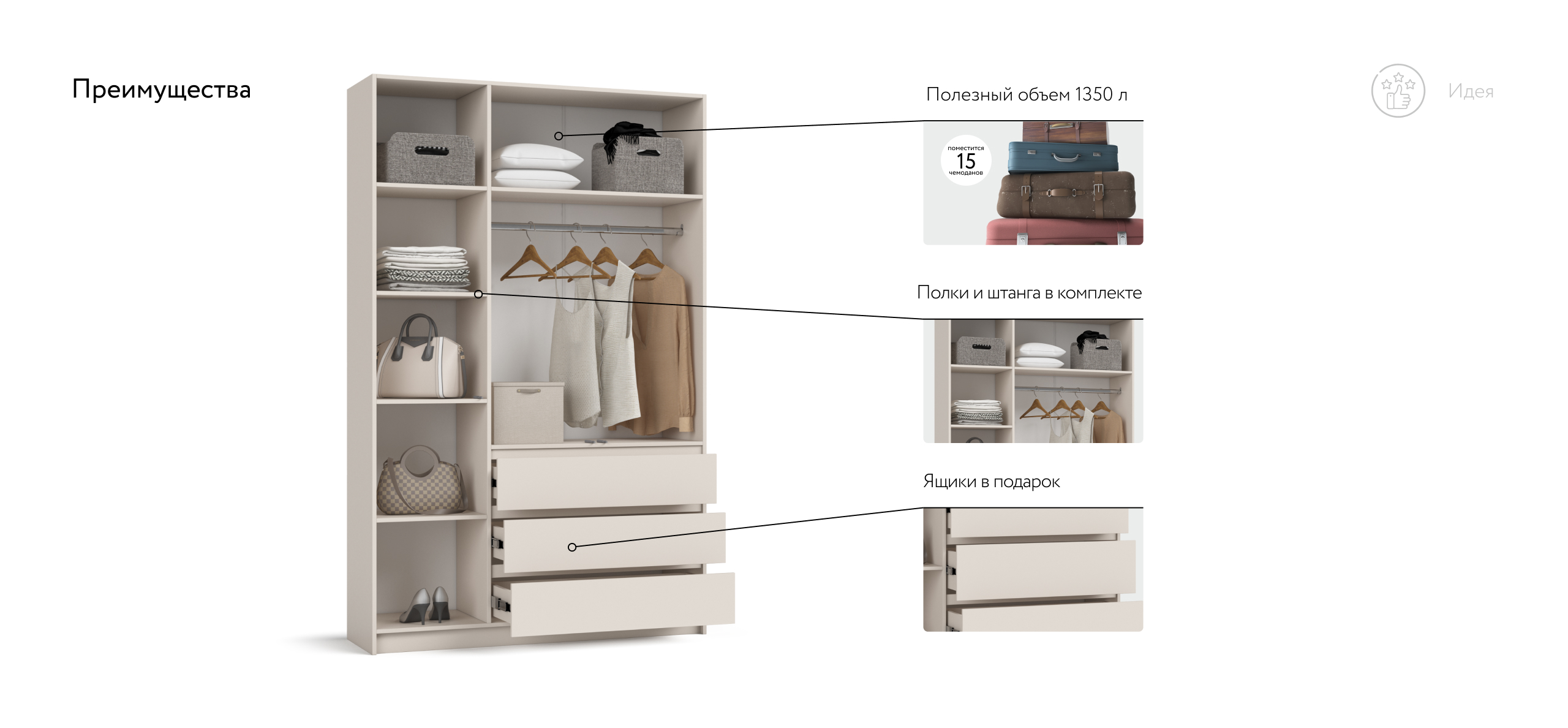 Шкаф Идея 135 распашной 3Д+ящики Кашемир