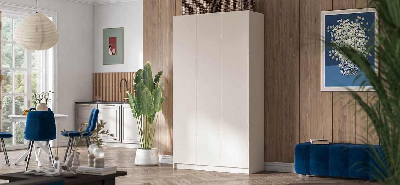 Два оттенка — тёплый Кашемир и светлый Белый — легко встраиваются в сценарии современной квартиры: от спокойного минимализма до мягкой неоклассики. Итог — ощущение упорядоченности и воздуха, когда всё на своём месте и всё под рукой.