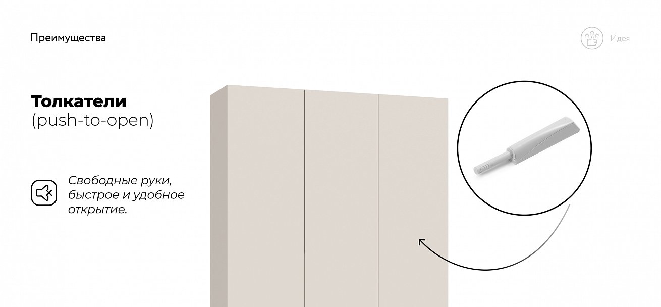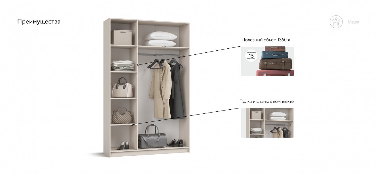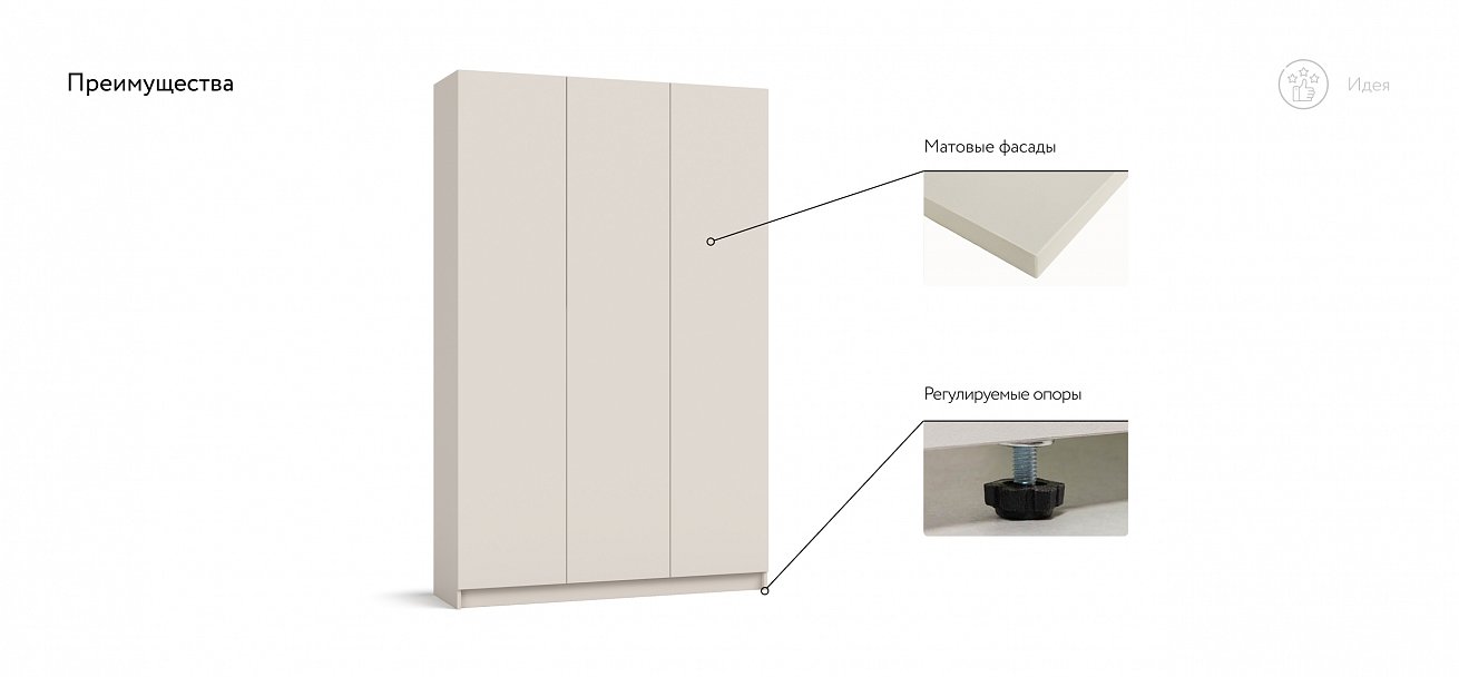 Линейка распашных шкафов Идея — про лёгкость пространства и дисциплину вещей. Чистые фасады не спорят с интерьером, отражают свет и визуально разгружают комнату.