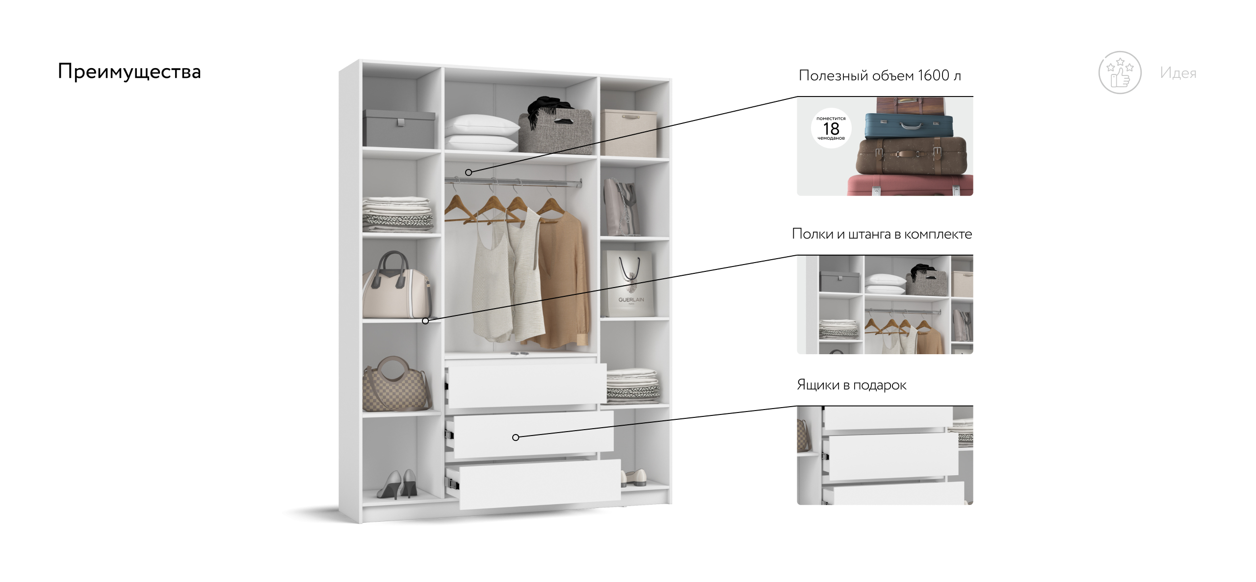 Шкаф Идея 160 распашной 4Д+ящики Белый