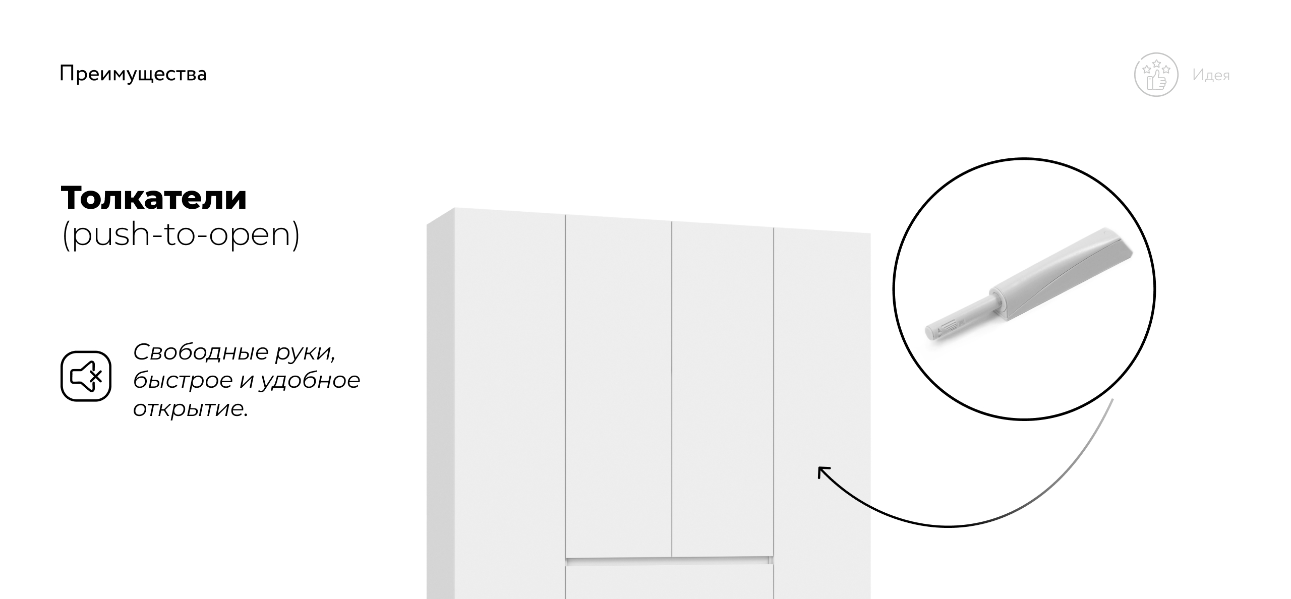 Линейка распашных шкафов Идея — про лёгкость пространства и дисциплину вещей. Чистые фасады не спорят с интерьером, отражают свет и визуально разгружают комнату.