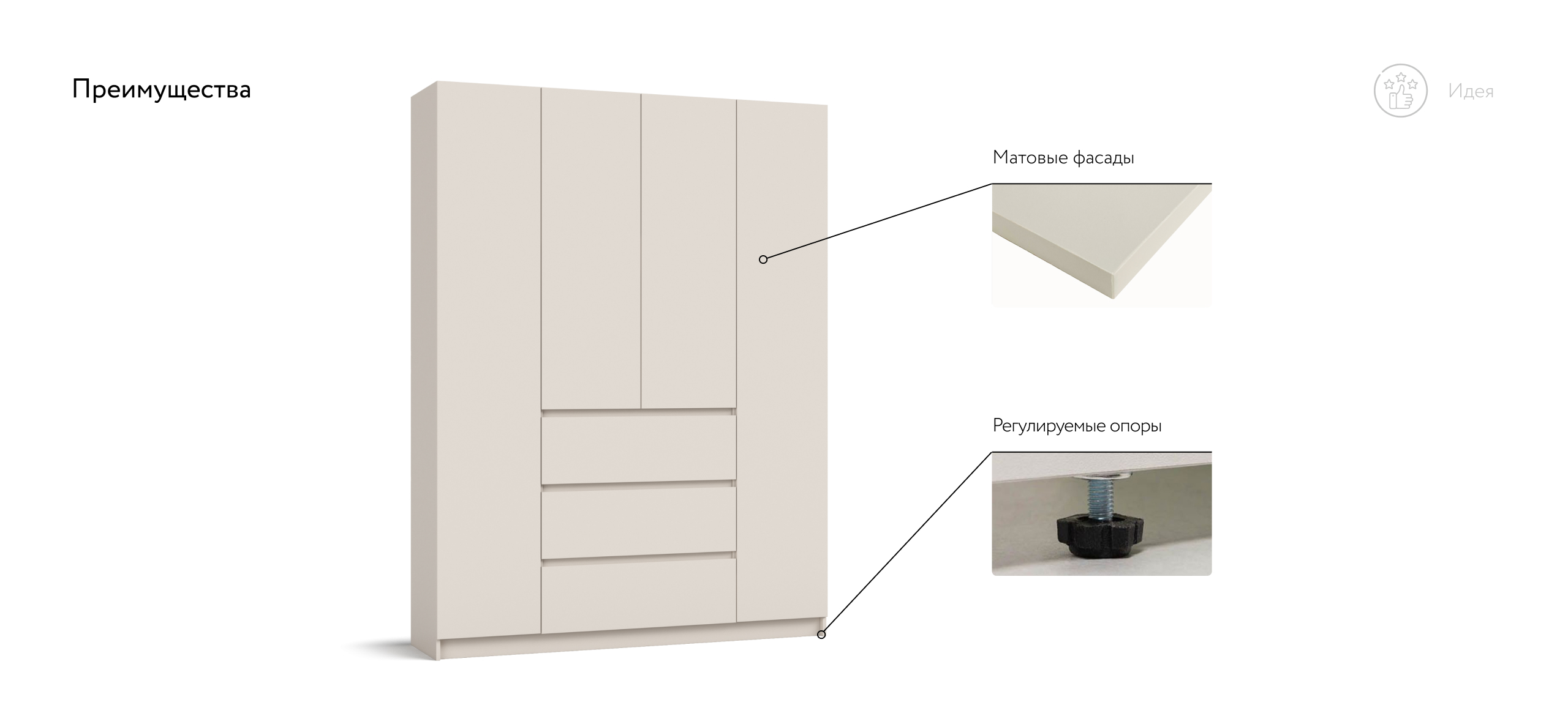 Шкаф Идея 160 распашной 4Д+ящики Кашемир