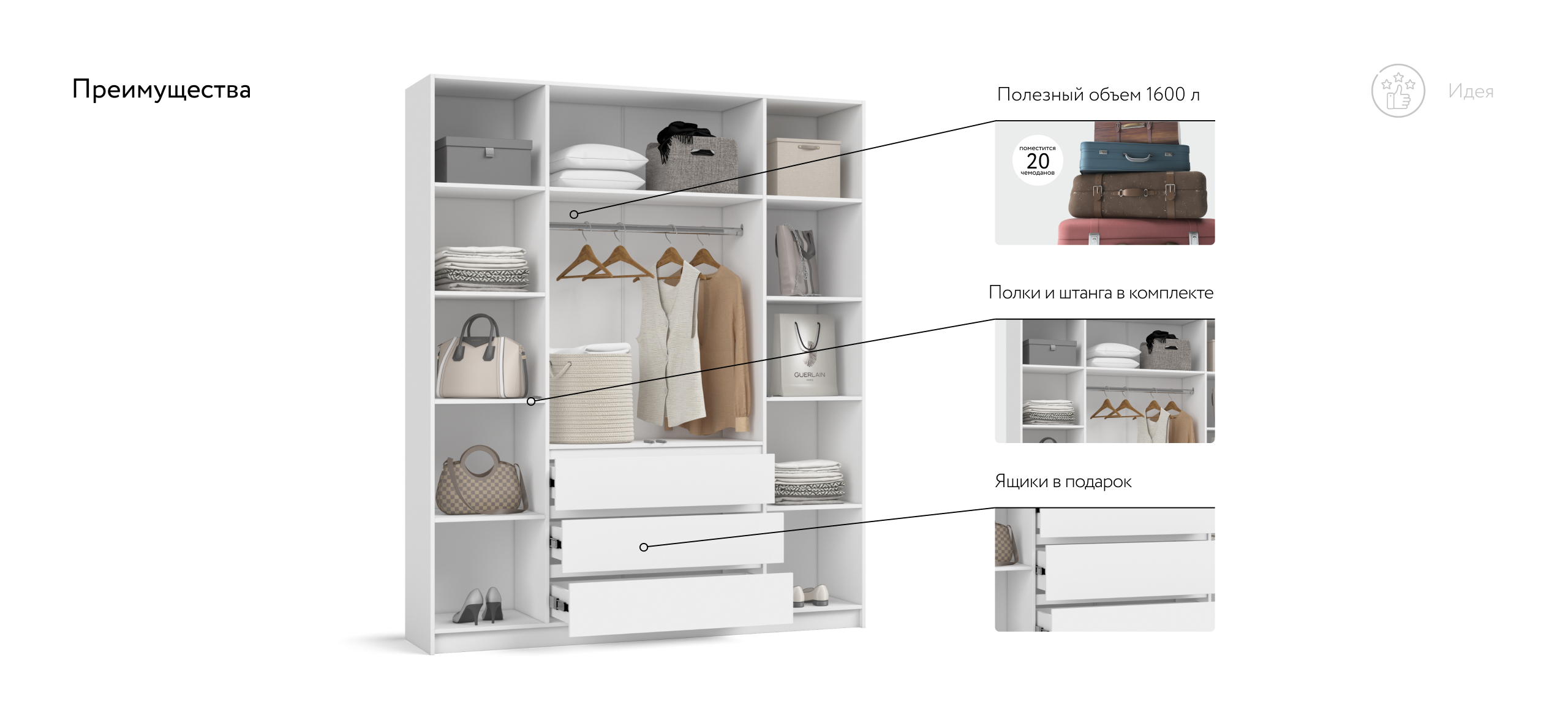 Шкаф Идея 180 распашной 4Д+ящики Белый
