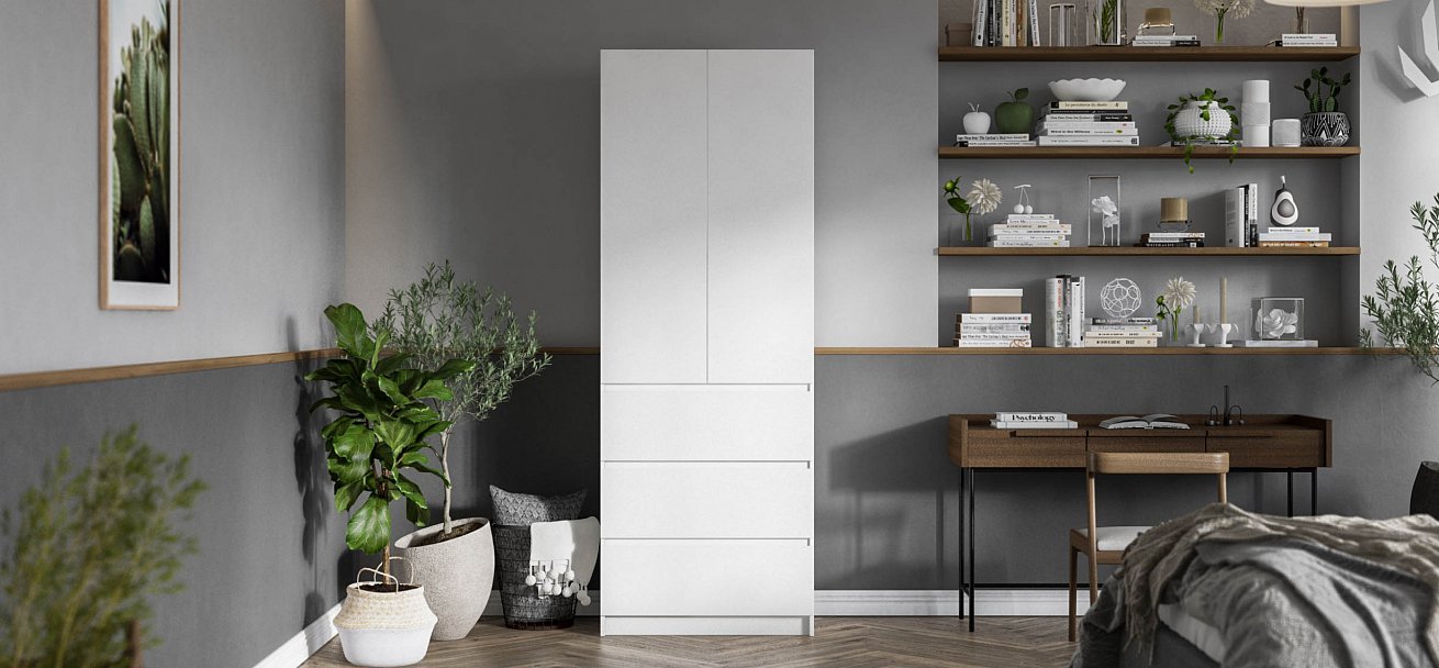 Два оттенка — тёплый Кашемир и светлый Белый — легко встраиваются в сценарии современной квартиры: от спокойного минимализма до мягкой неоклассики. Итог — ощущение упорядоченности и воздуха, когда всё на своём месте и всё под рукой.