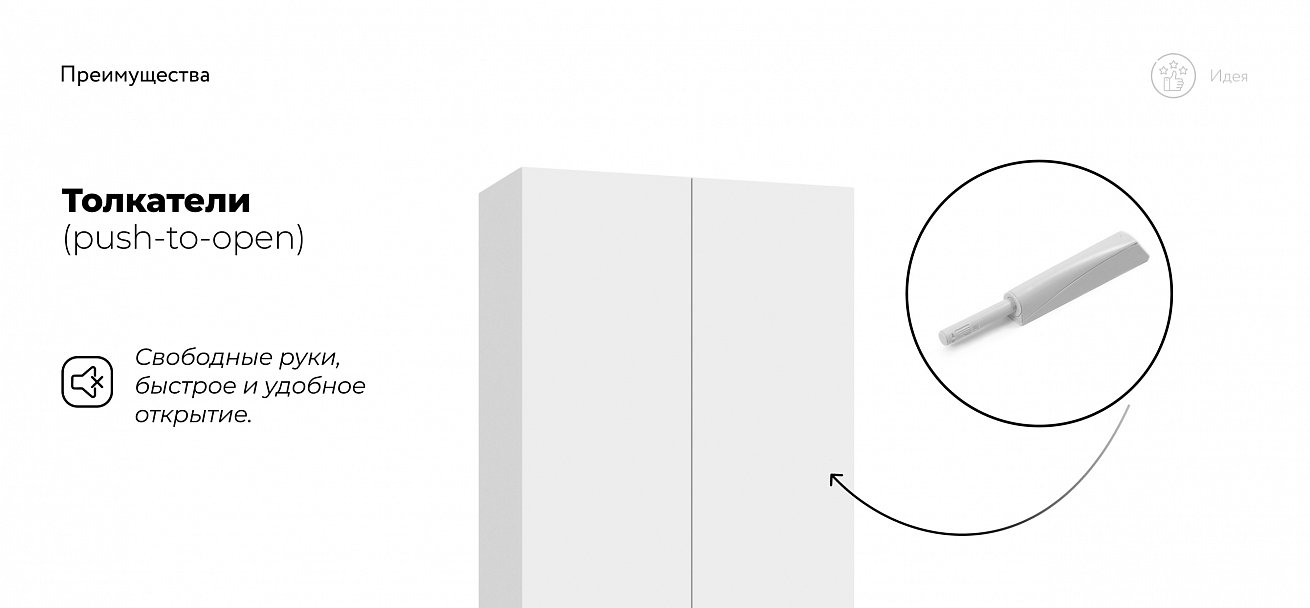 Линейка распашных шкафов Идея — про лёгкость пространства и дисциплину вещей. Чистые фасады не спорят с интерьером, отражают свет и визуально разгружают комнату.