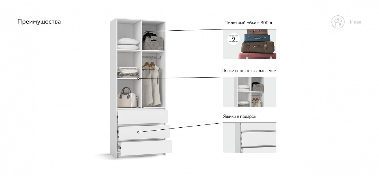 Шкаф Идея 90 распашной 2Д+ящики Белый