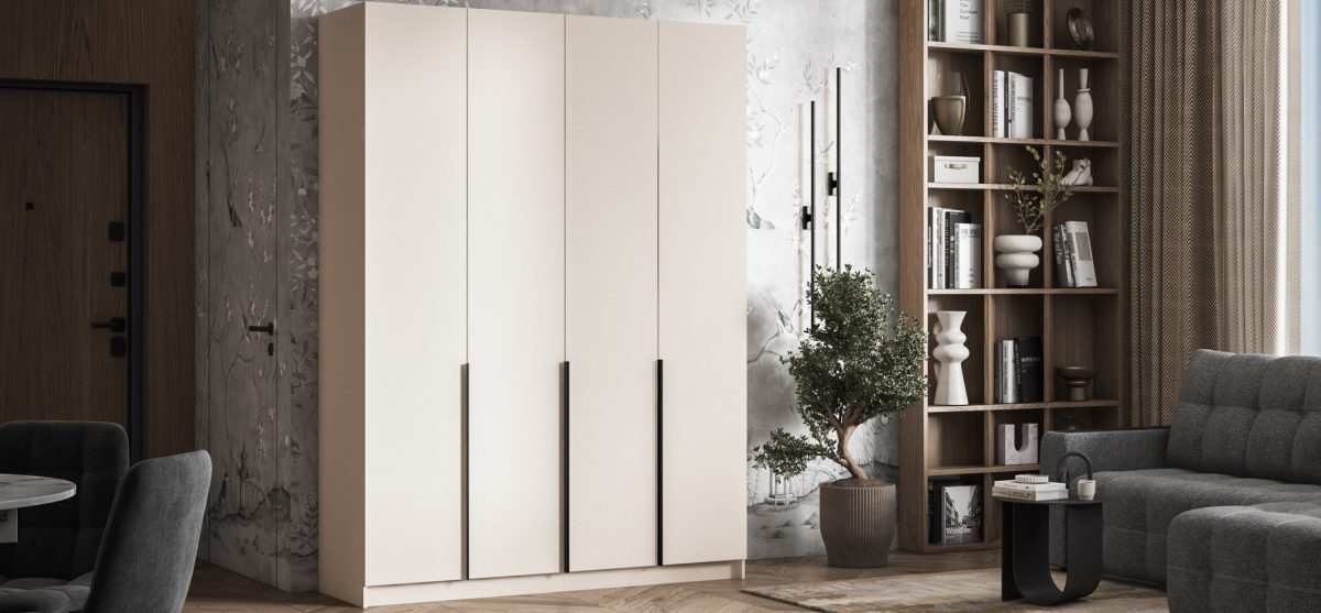 Шкаф Рим 160 — масштабное решение для тех, кто хочет хранить много и держать интерьер в современных трендах. Лаконичный фасад с удлинёнными чёрными ручками отражает эстетику 2025 года и становится выразительным акцентом любой спальни — от сканди до неоклассики. Увеличенная ширина и симметричная конструкция позволяют разместить сезонный гардероб, обувные коробки и текстиль так, чтобы в комнате осталось больше свободного пространства.
