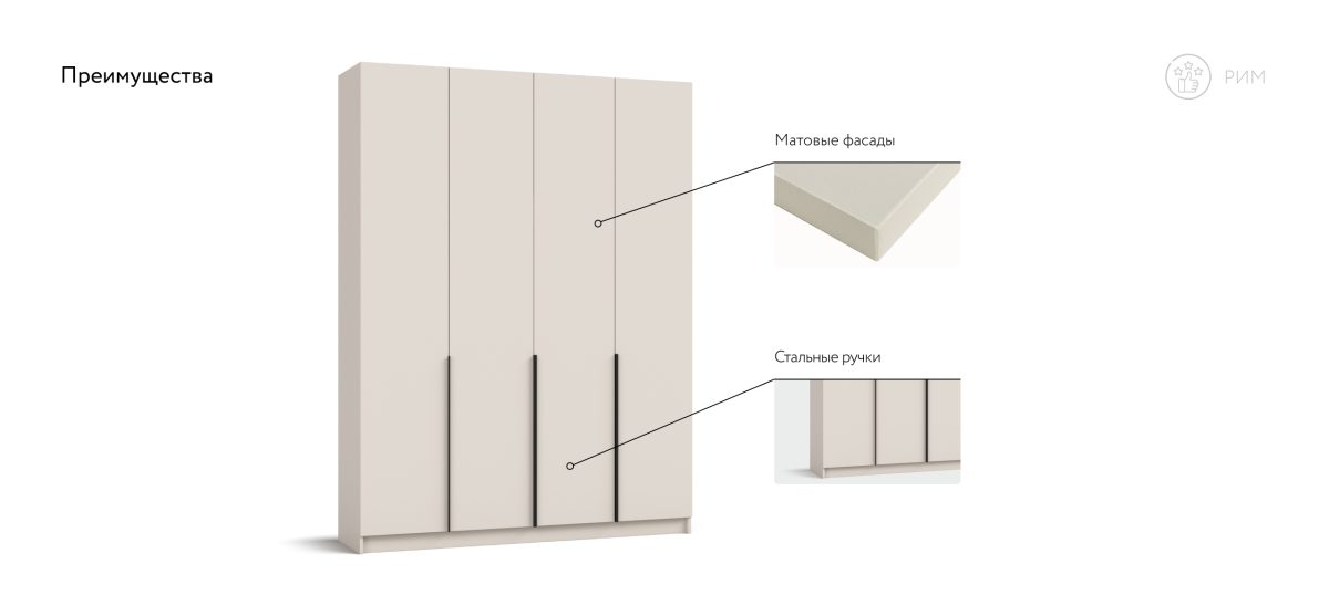 Шкаф РИМ 160 распашной 4Д+ящики Кашемир серый