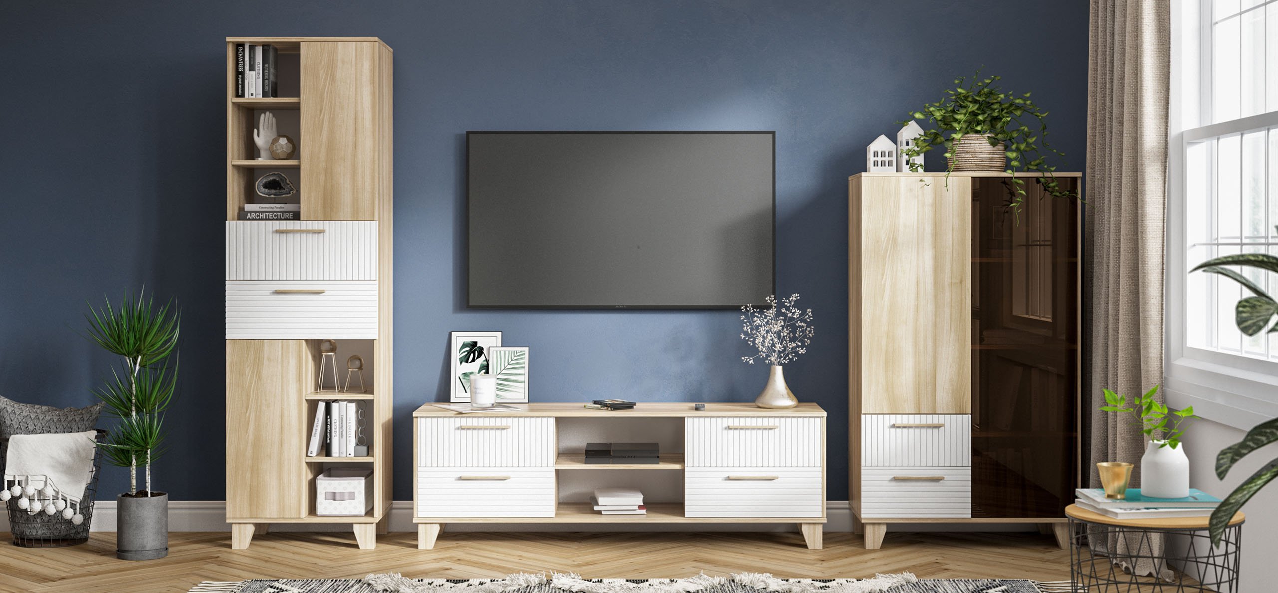 Шкаф – витрина OLAF главная изюминка гостиной в скандинавском стиле. Тонированное стекло в оттенке Sunset Bronze создает в интерьере игру света и выгодно оттеняет цвет натурального дерева. Дверцы стеллажа оснащены системой Push to open для бесшумного открывания. Два выдвижных ящика позволят разместить нужные мелочи и скрыть их от посторонних глаз.