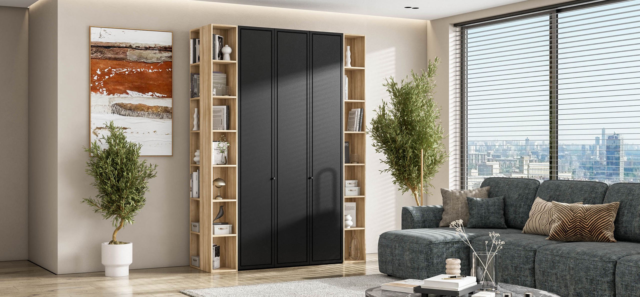 Стеллаж BOSS new – отличное функциональное дополнение к вашу прихожую, гостиную или спальню. Предназначен для хранения домашней библиотеки и уютных элементов декора. Два стеллажа идеально вмещаются к глубине шкафа.