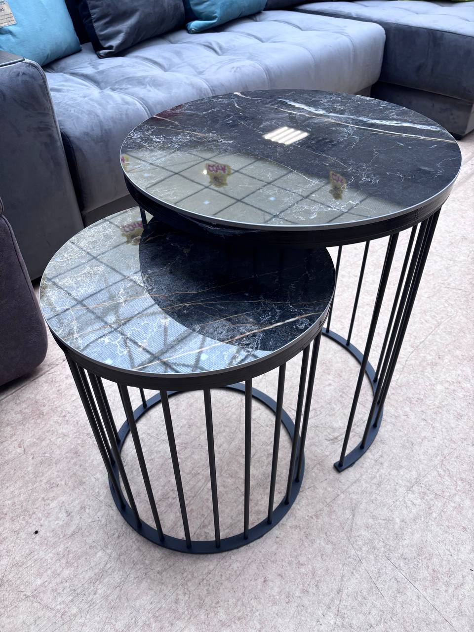 Стол журнальный Турин керамика Louvre light grey\черный матовый