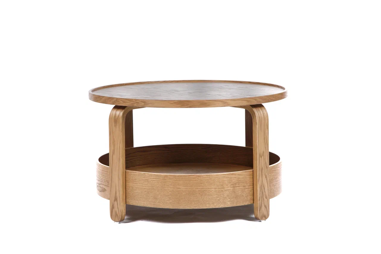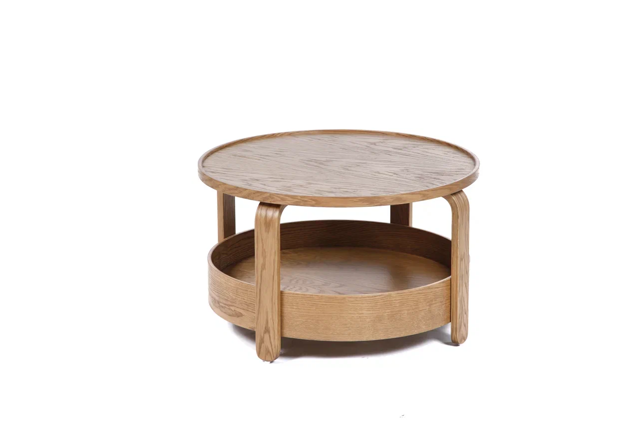 Журнальный стол Ишим сочетает в себе лаконичную форму, натуральные материалы и функциональность. Круглая столешница диаметром 700 мм, облицованная шпоном дуба, подчёркивает природную текстуру древесины и придаёт интерьеру уют. Опора выполнена из прочного гнутоклееного шпона, что делает конструкцию не только устойчивой, но и визуально лёгкой.
