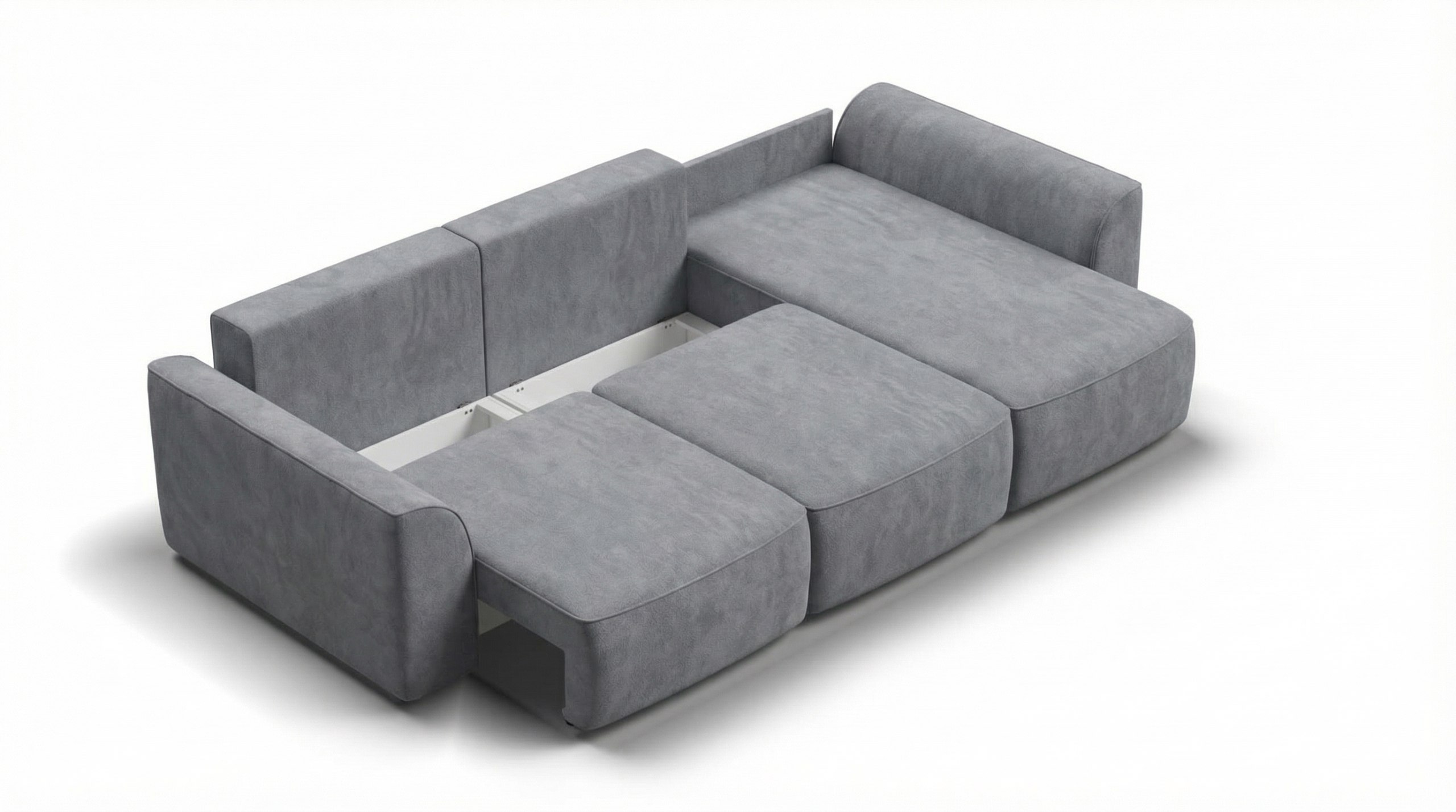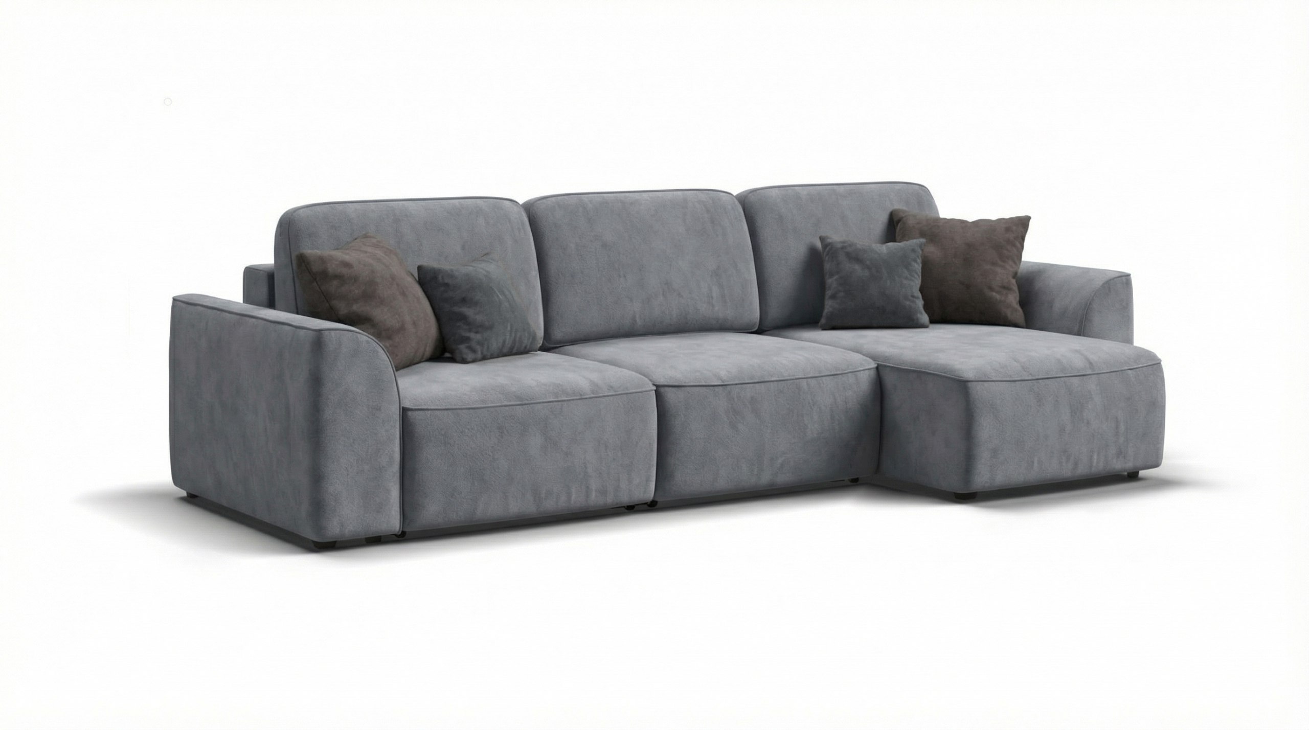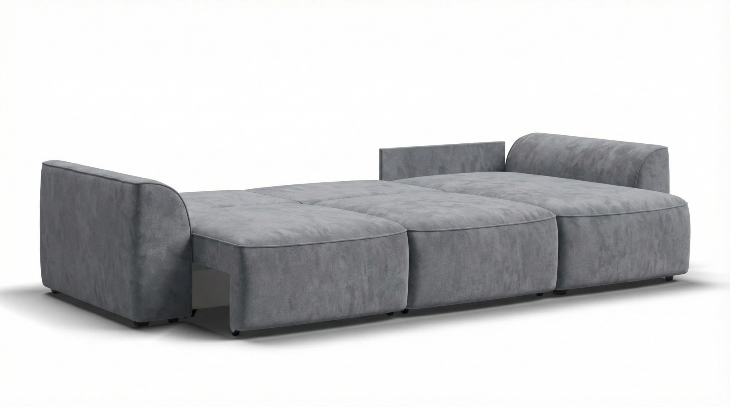 Комфортная посадка, скругленные линии, объемные подушки — диван, который наполнит ваш дом уютом и комфортом. Универсальный угол позволит Вам самостоятельно выбрать его положение при сборке, а каждое посадочное место можно выдвинуть вперед и получить П-образную форму дивана, на котором с комфортом разместится большая компания. А в разложенном виде диван превращается в комфортное спальное место.