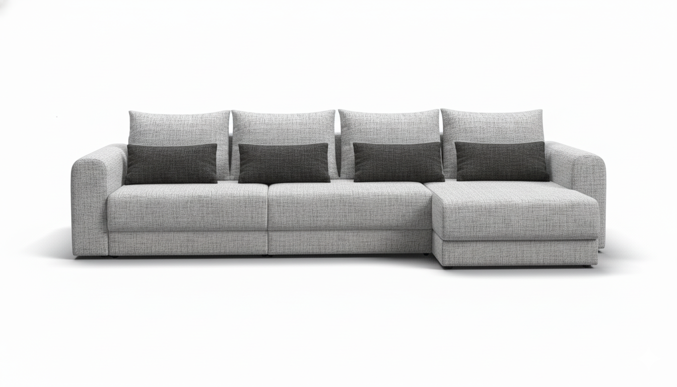 Широкие скругленные подлокотники, плавные линии и приспинные подушки разного размера – стильный комфорт в каждой детали.