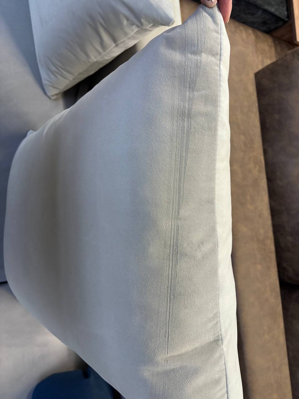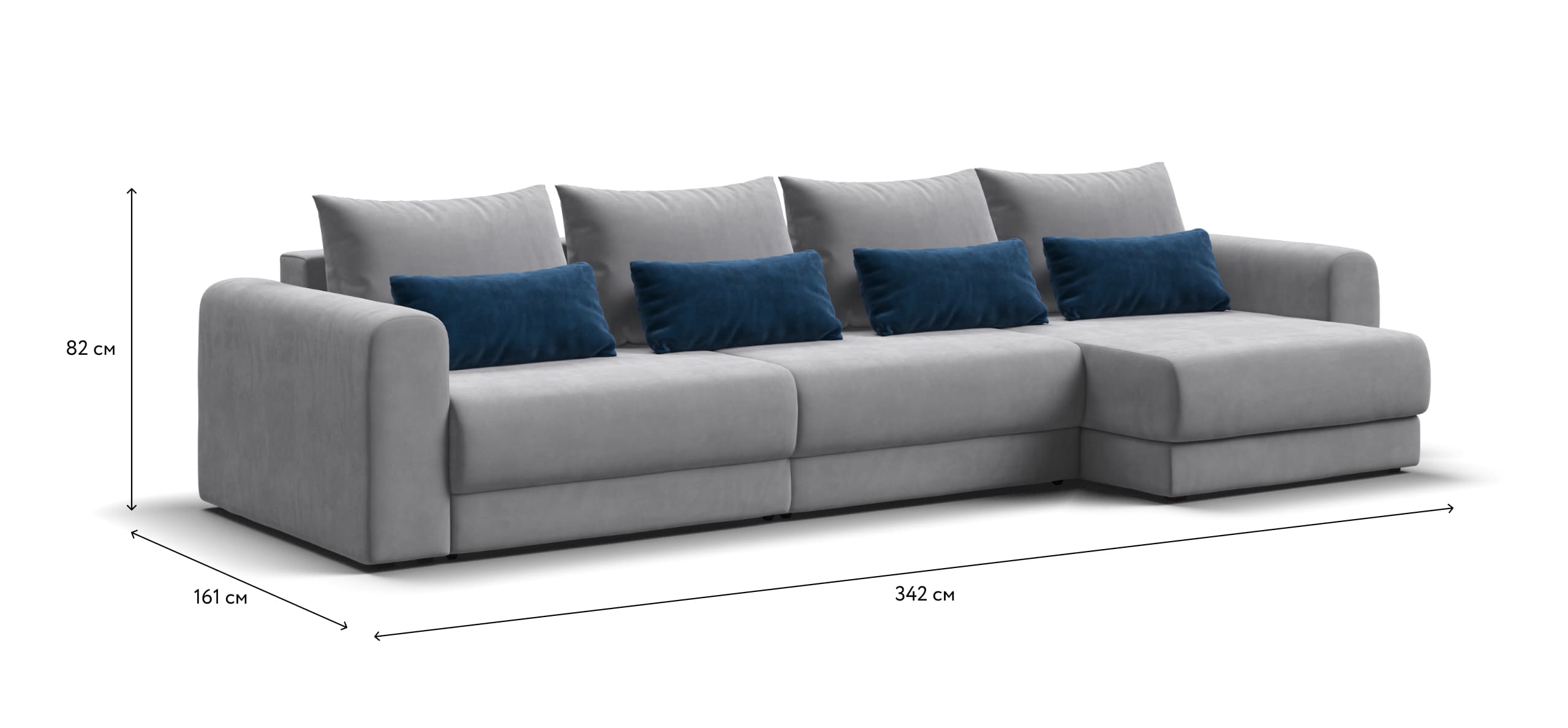 Широкие скругленные подлокотники, плавные линии и приспинные подушки разного размера — стильный комфорт в каждой детали.