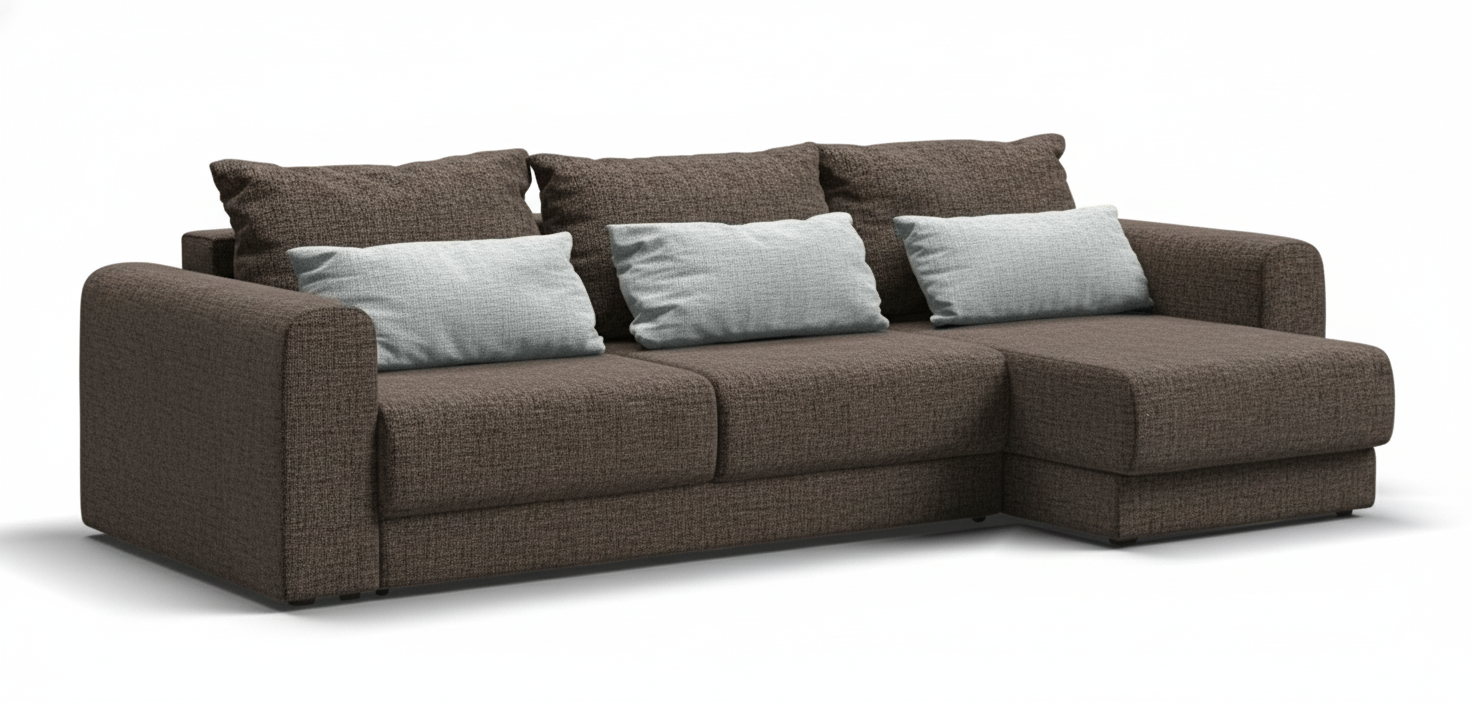 Диван СОтА-33 угловой современный, комфортабельный лаунж диван с оригинальным дизайном. Его плавные формы, комфортная глубокая посадка, большое количество декоративных подушек и мягкая ткань добавляют в интерьер уюта.