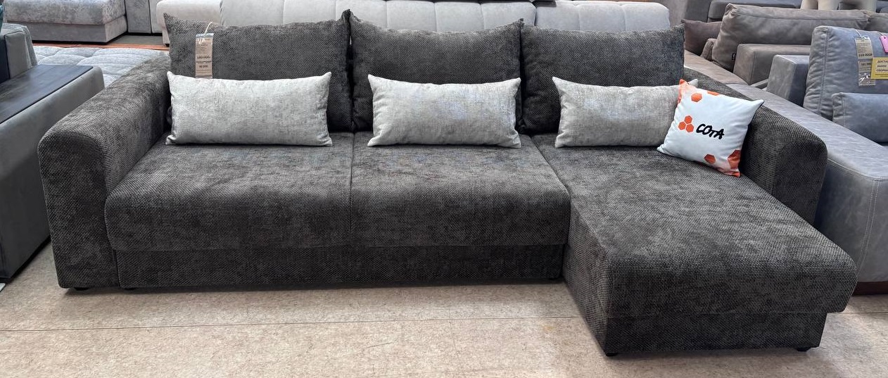 Диван СОтА-33 угловой современный, комфортабельный лаунж диван с оригинальным дизайном. Его плавные формы, комфортная глубокая посадка, большое количество декоративных подушек и мягкая ткань добавляют в интерьер уюта.
