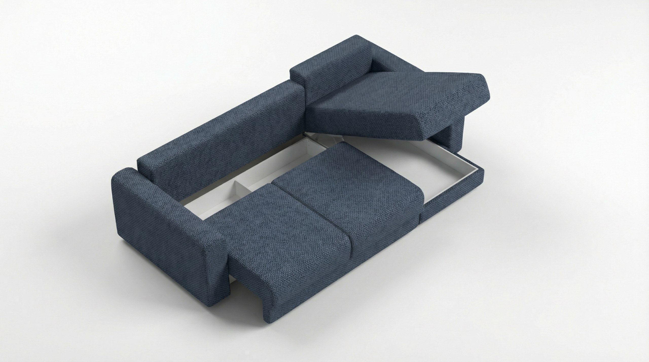Универсальный угол позволит Вам самостоятельно выбрать его положение при сборке, а также, при необходимости, поменять при переезде. В основании дивана размещены большие и удобные бельевые ящики и дополнительный в оттоманке.