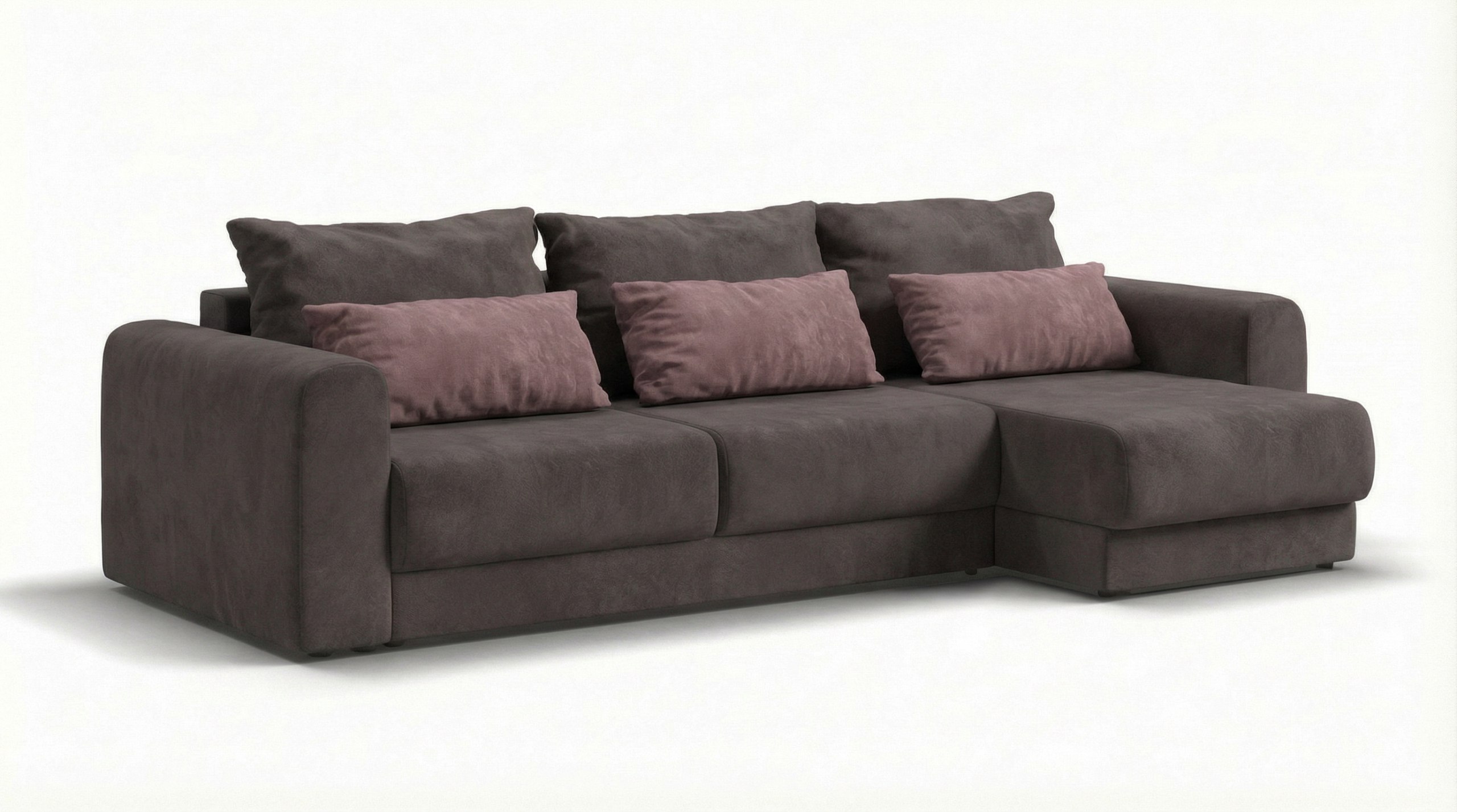 Диван СОтА-33 угловой современный, комфортабельный лаунж диван с оригинальным дизайном. Его плавные формы, комфортная глубокая посадка, большое количество декоративных подушек и мягкая ткань добавляют в интерьер уюта.